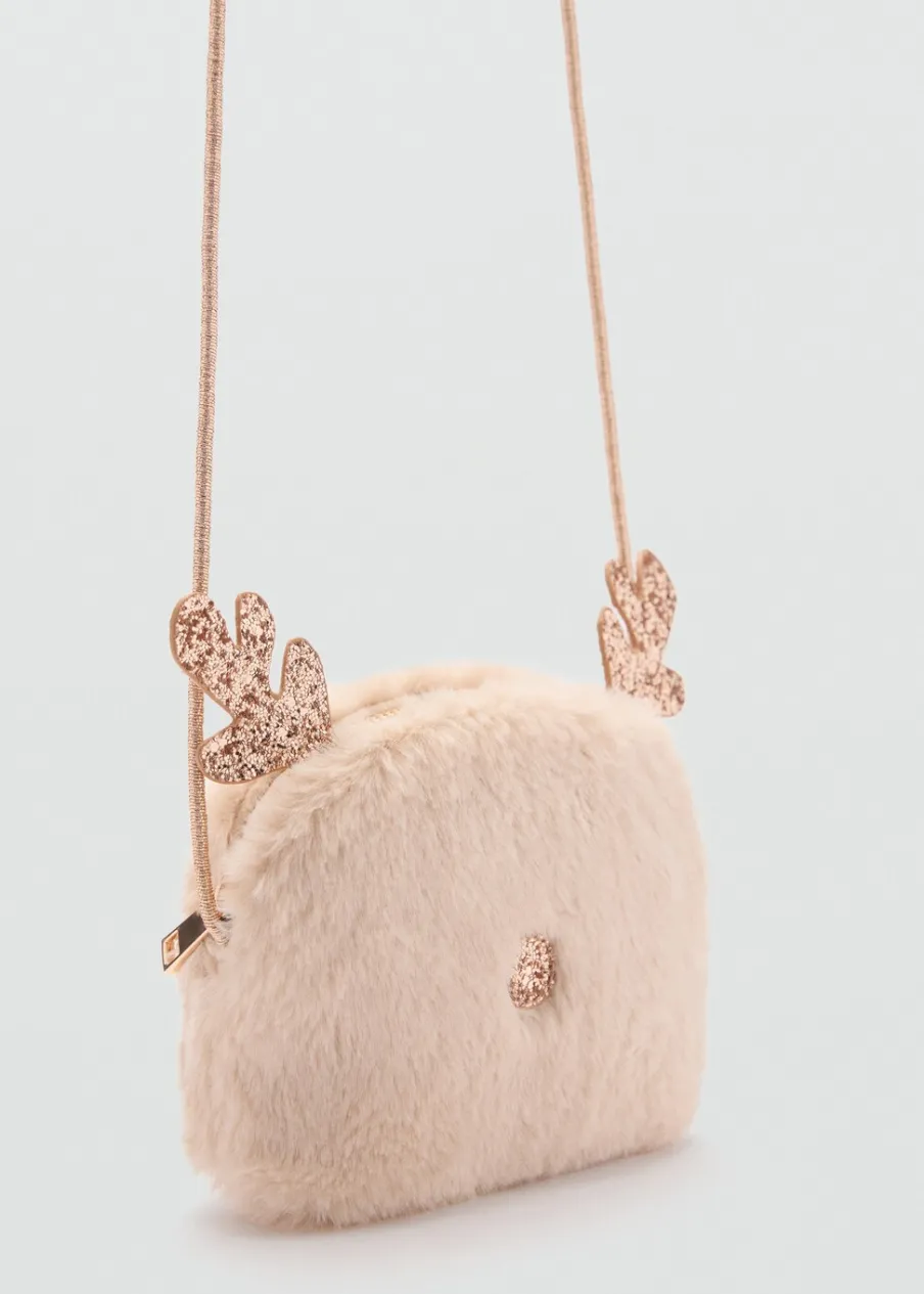 Włochata tekstura. Motyw renifera. Zapięcie na suwak. Długi uchwyt. Kolekcja Bożonarodzeniowa.