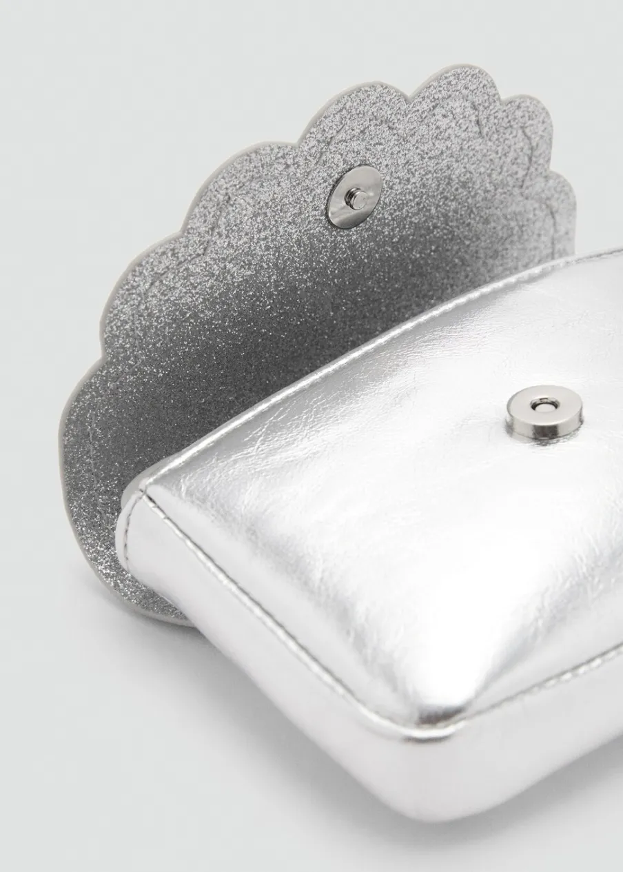 Kolekcja Powrót do szkoły. Mała wielkość. Metaliczny efekt. Detal z brokatem. Długi uchwyt. Pasek do noszenia na skos.