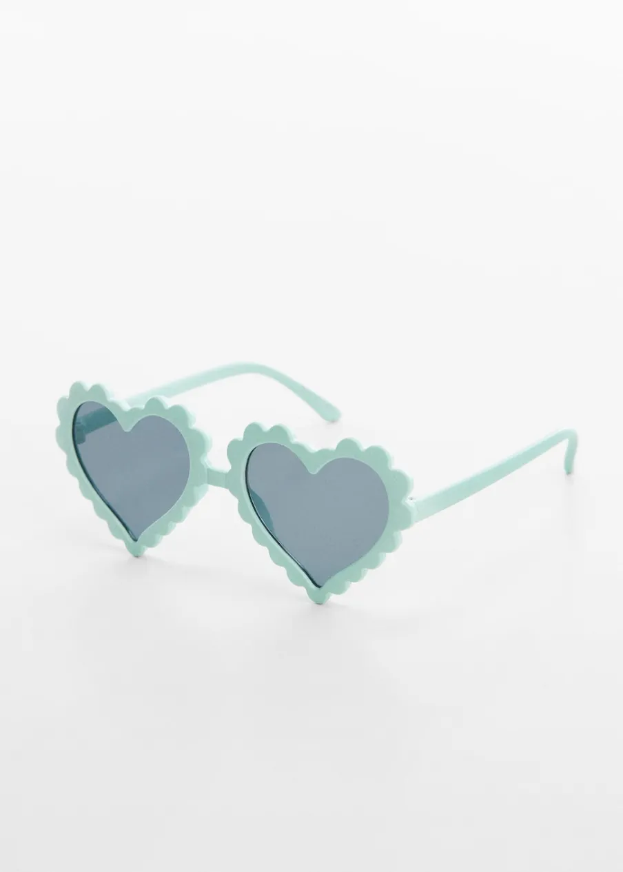 W kształcie serca. Oprawki z tworzywa. Całkowity wskaźnik ochronny z filtrem UV kategorii 3. Oprawki z tworzywa.