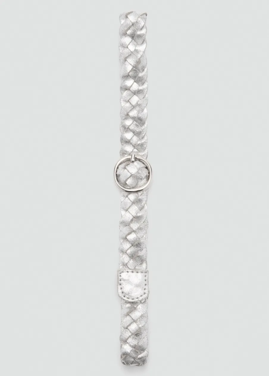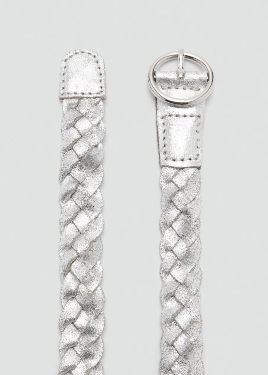 Opis100% skóra. Metaliczny efekt. Model pleciony. Zapięcie na klamrę. Okrągła klamra.