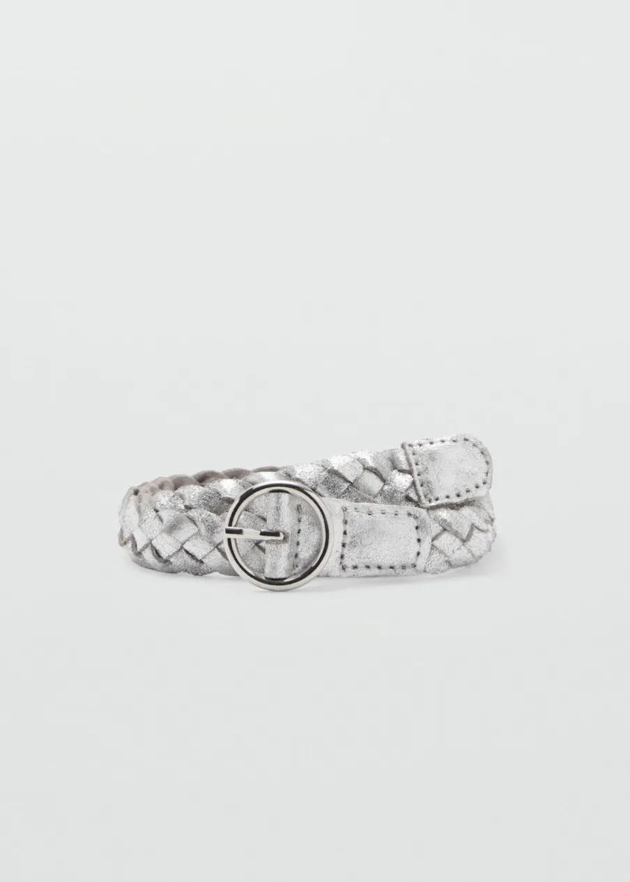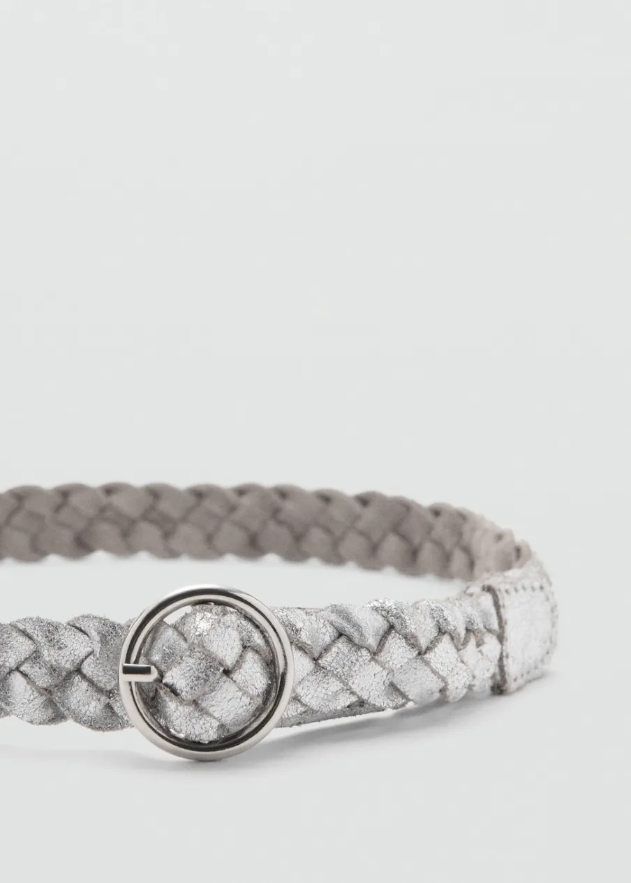 100% skóra. Metaliczny efekt. Model pleciony. Zapięcie na klamrę. Okrągła klamra.