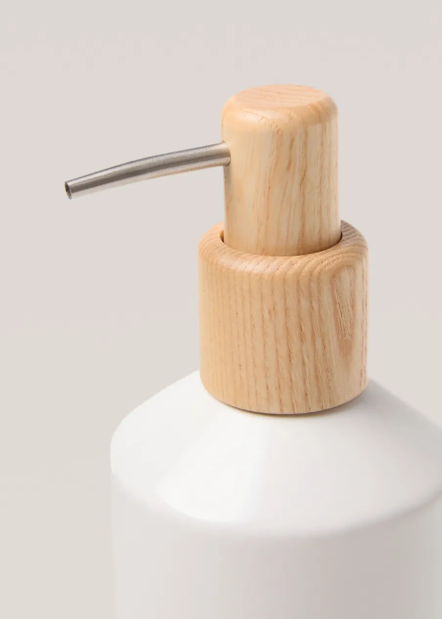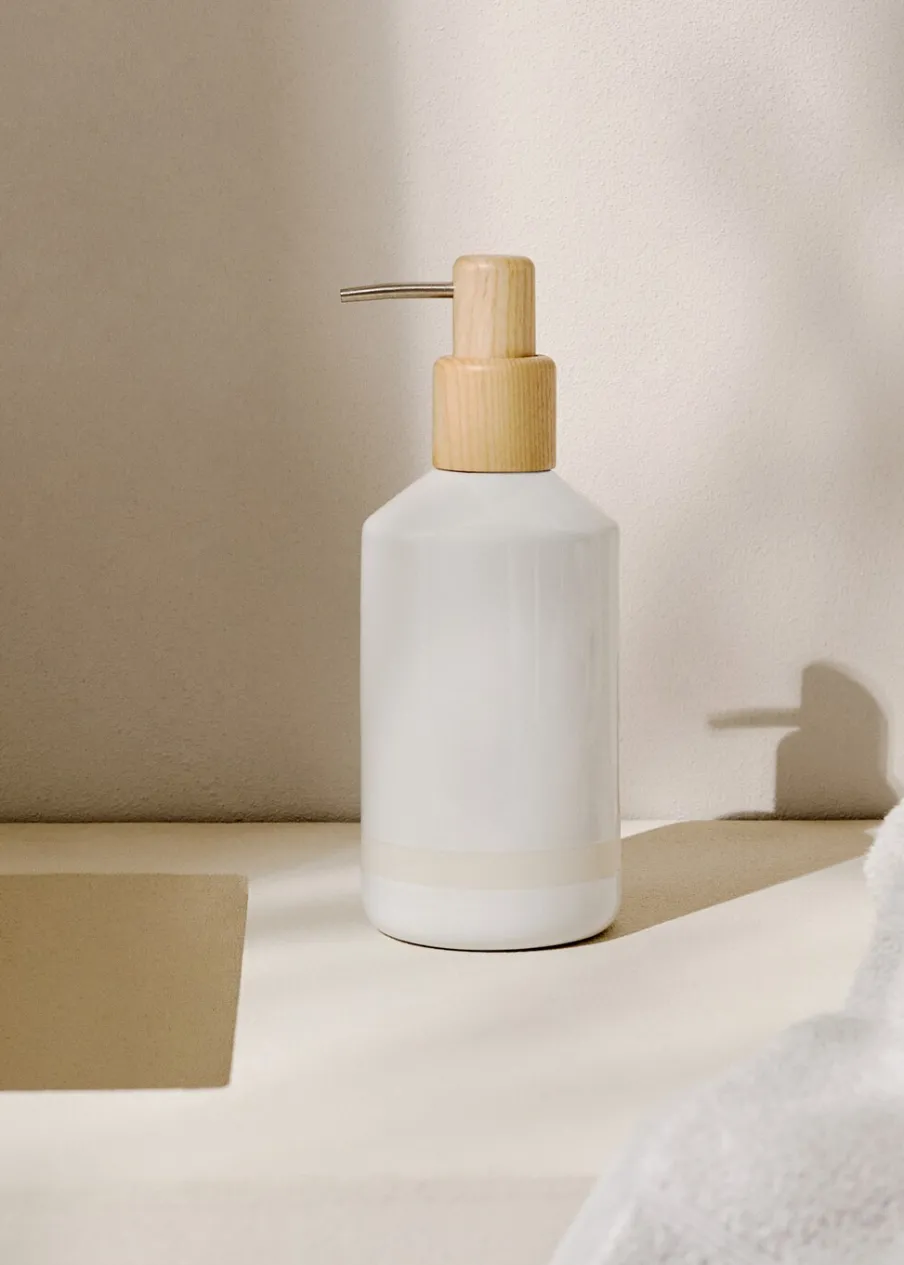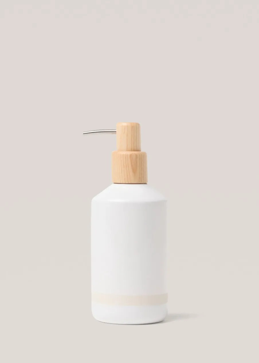 90% kamionka. 10% drewna. Pojemność: 350 ml. Wysokość 14 cm. Średnica: 7 cm. Kontrastowy pas. Kolekcja spa. Akcesorium do domu. Skompletuj look za pomocą innych produktów z kolekcji.