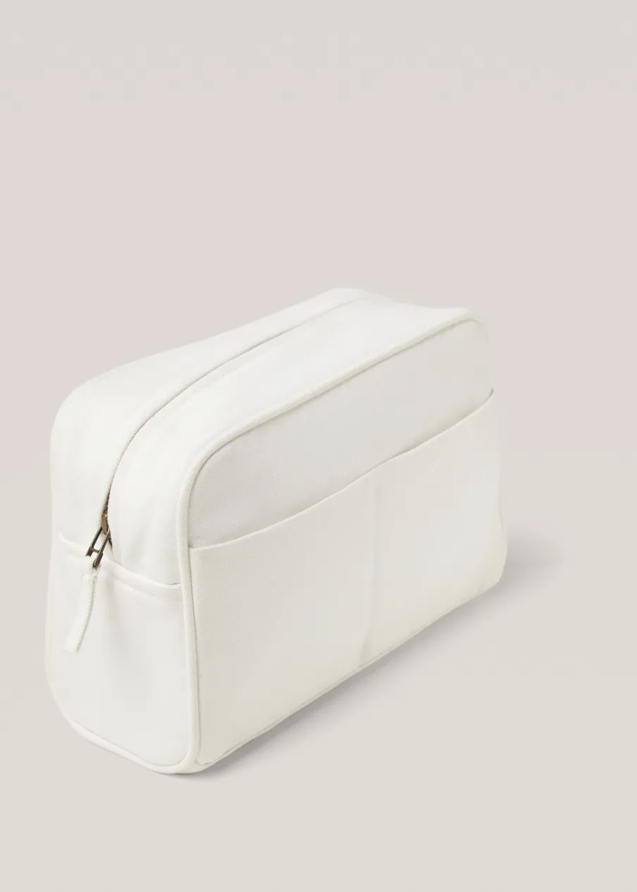 Główna przegroda z zapięciem na zamek. Dwie kieszenie nakładane po bokach. Kieszenie wewnętrzne. Prostokątny kształt. Ta kosmetyczka będzie wiernym towarzyszem podróży, który pomoże utrzymać porządek w Twoich rzeczach i transportować je z elegancją. Jest idealna na kosmetyki i akcesoria do makijażu, a także inne drobiazgi. Trwały materiał gwarantuje, że będzie czymś więcej niż modnym dodatkiem. Wymiary: 28 x 19 x 10 cm.