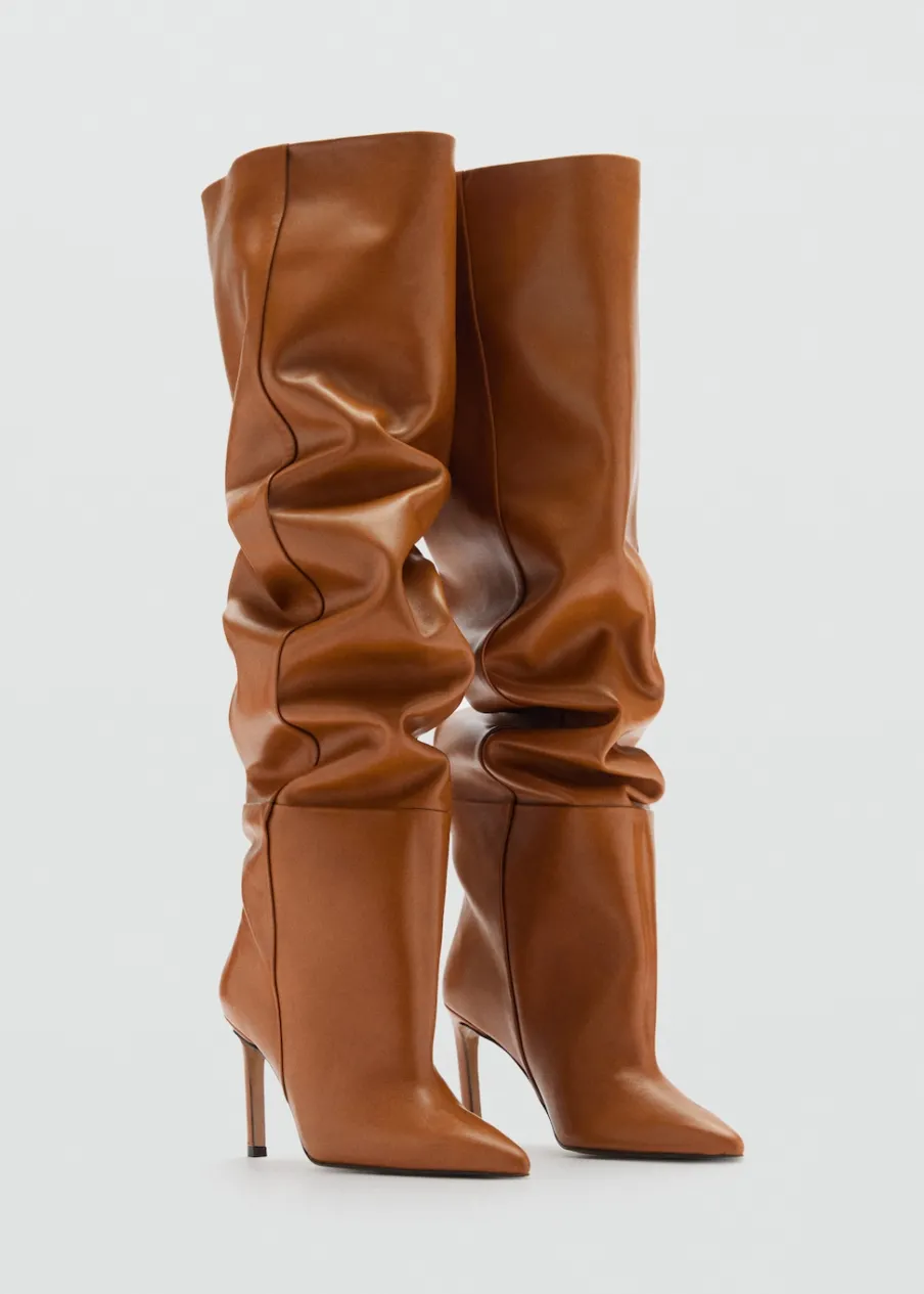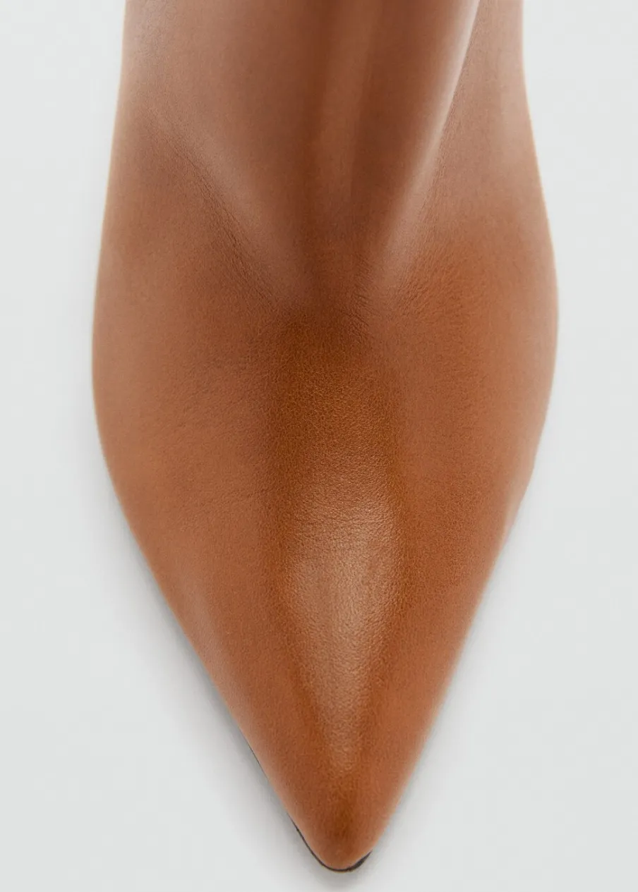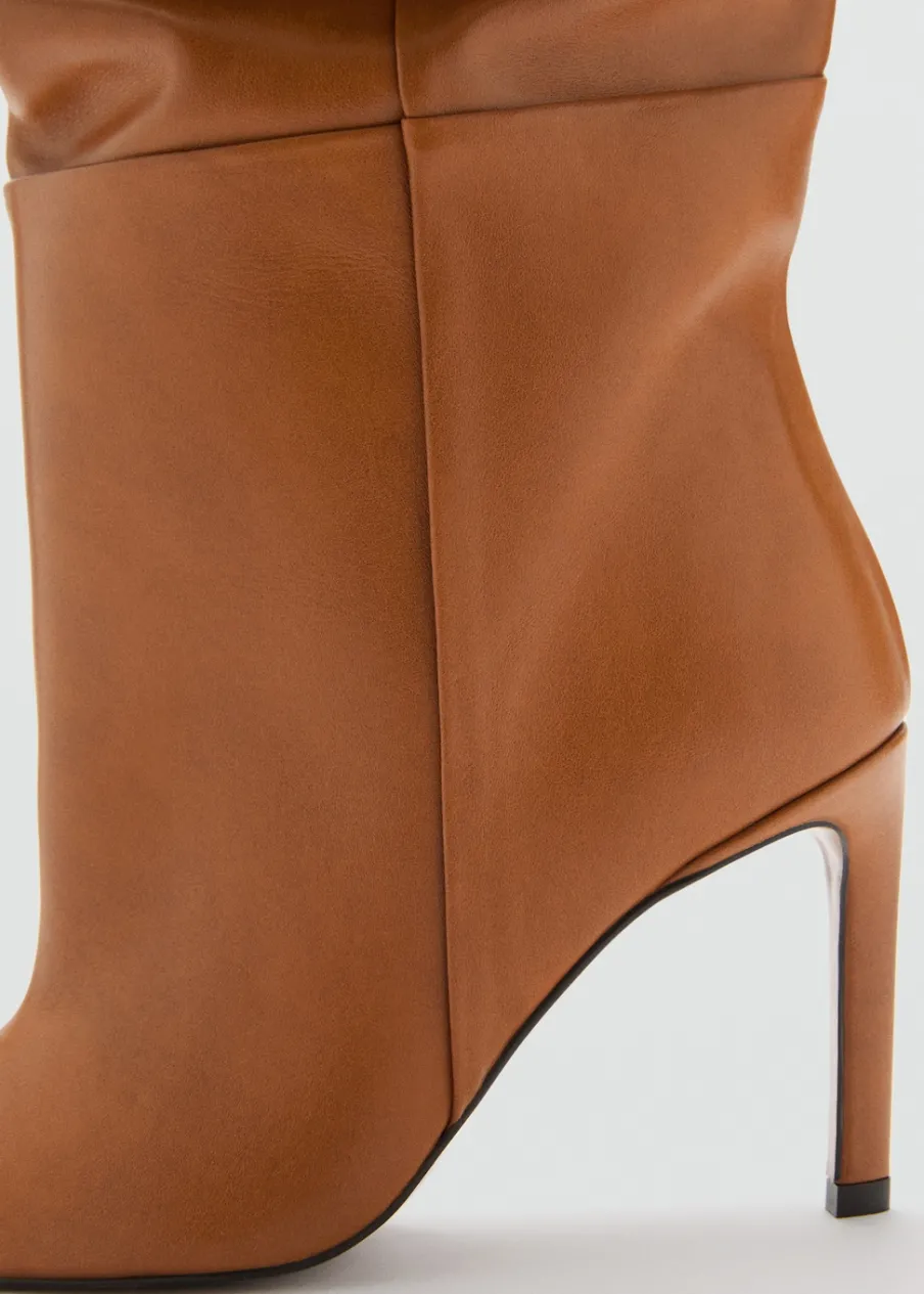 100% skóra bydlęca. Wysoka cholewka. Obcas szpilka. Spiczaste zakończenie. Obcas mierzy 7 cm. Bez zapięcia. Marszczony detal. Wyłącznie online.