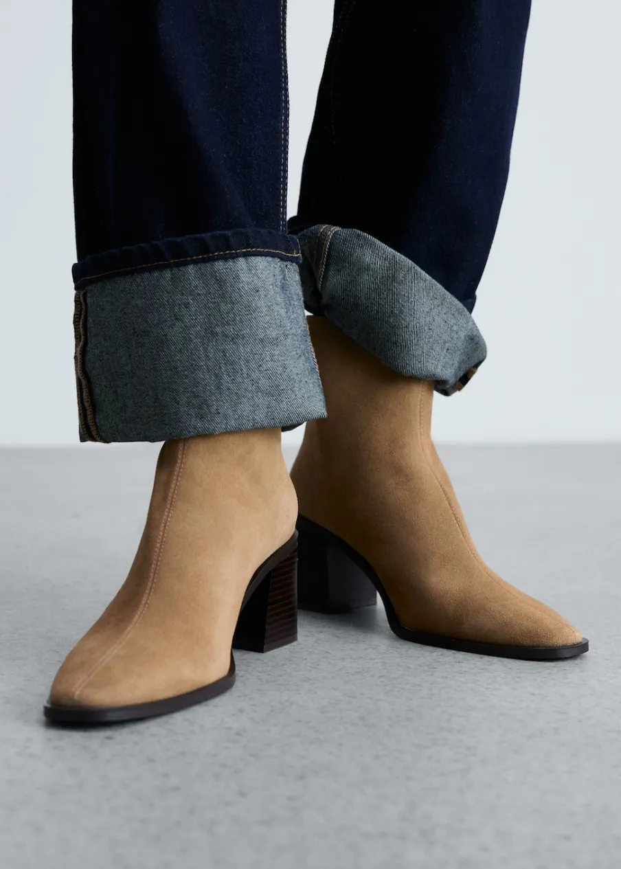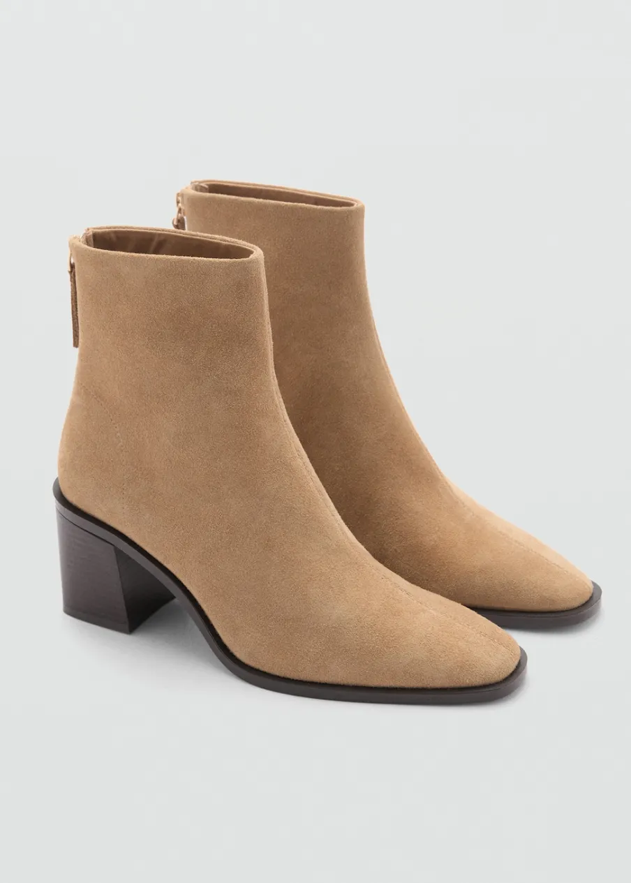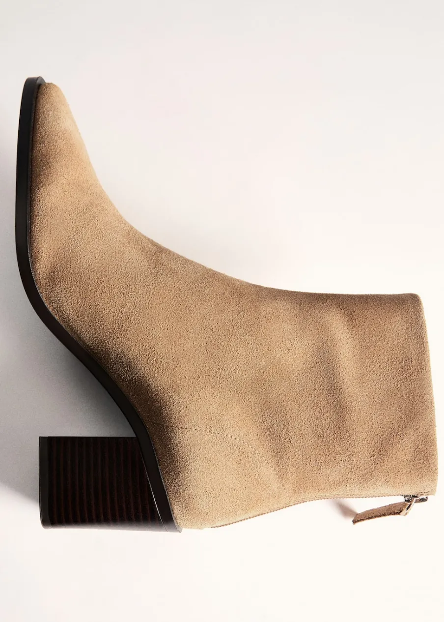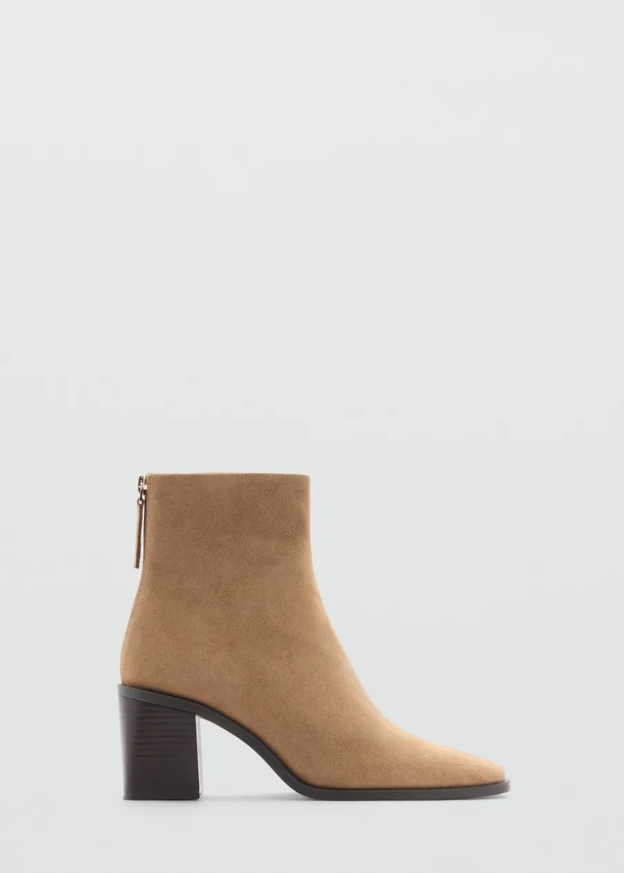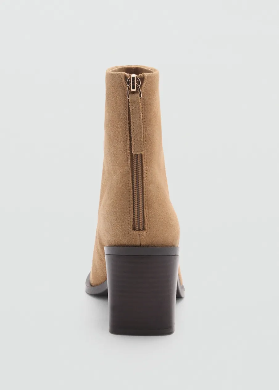 100% skóra bydlęca. Obcas klockowy. Okrągły nosek. Zapięcie na suwak. Obcas mierzy 5,5 cm.