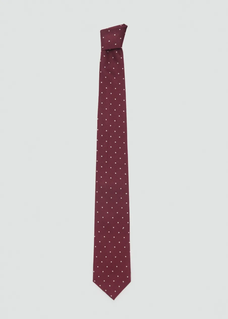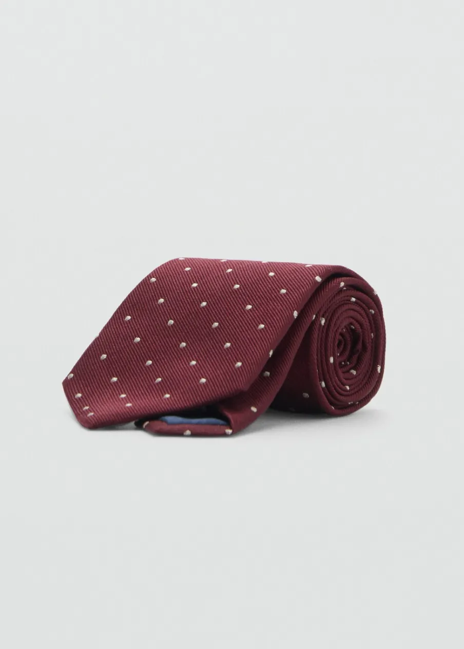 OpisTkanina z mieszanki jedwabiu. Deseń w groszki. Szerokość 8 cm.