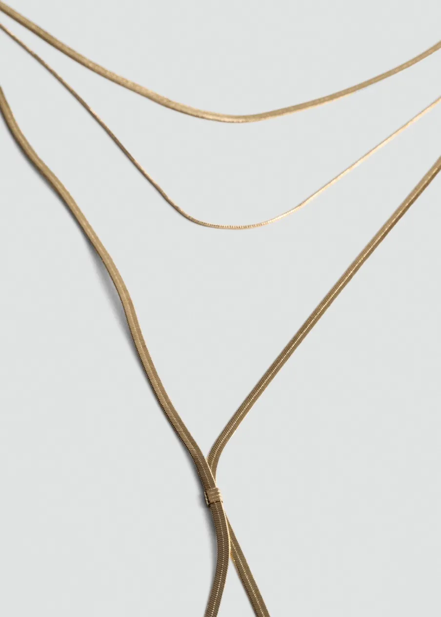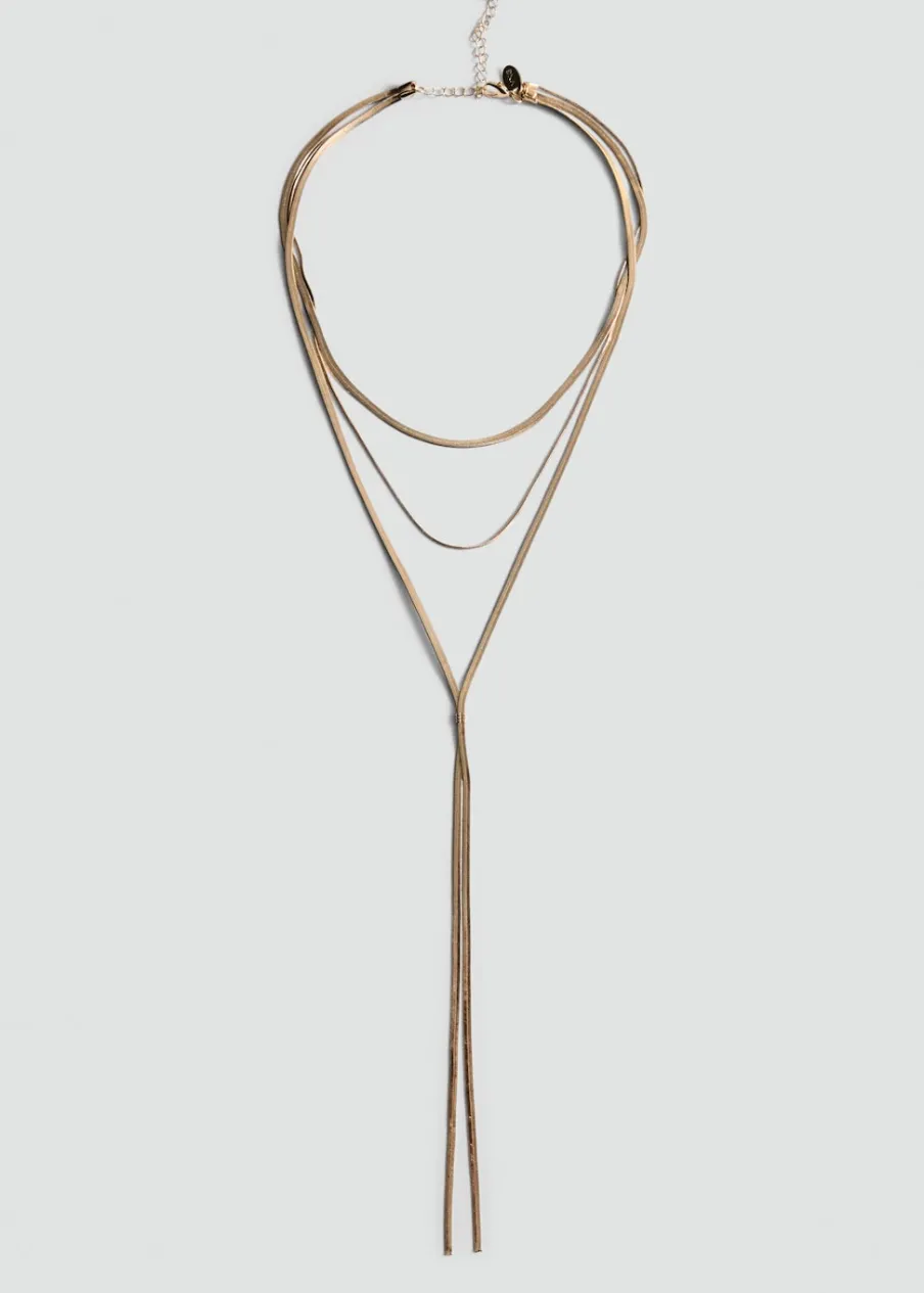 Model długi. Trzy łańcuszki. Zapięcie na łańcuszek i karabińczyk.
