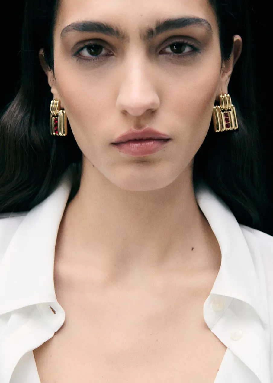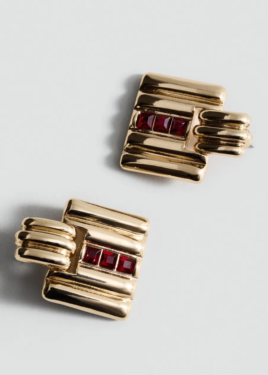 Geometryczny deseń. Model wypukły. Krótki krój. Średni rozmiar. Aplikacja z kryształków. Metalowe zapięcie na zatrzask.