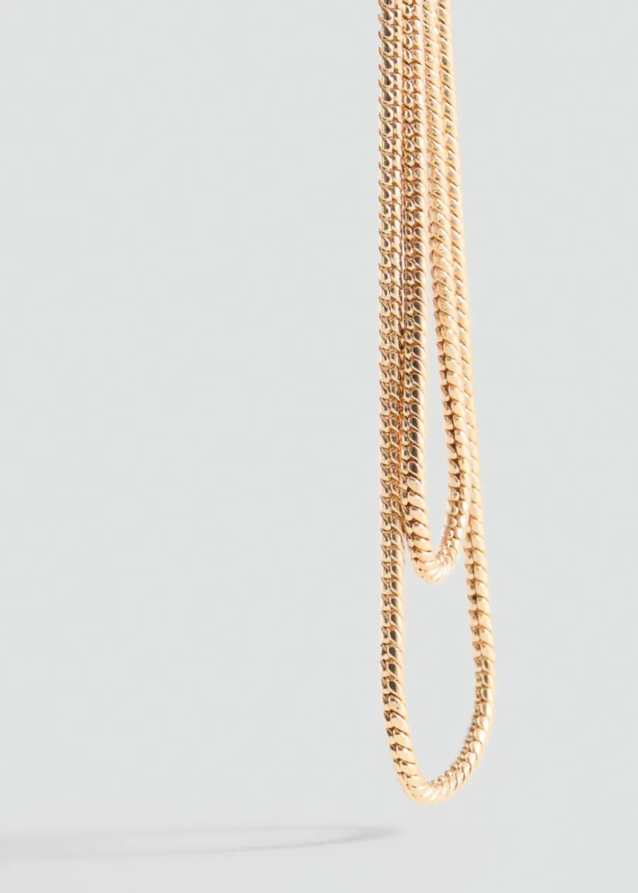 OpisOzdobne łańcuchy. Metalowe zapięcie na zatrzask.