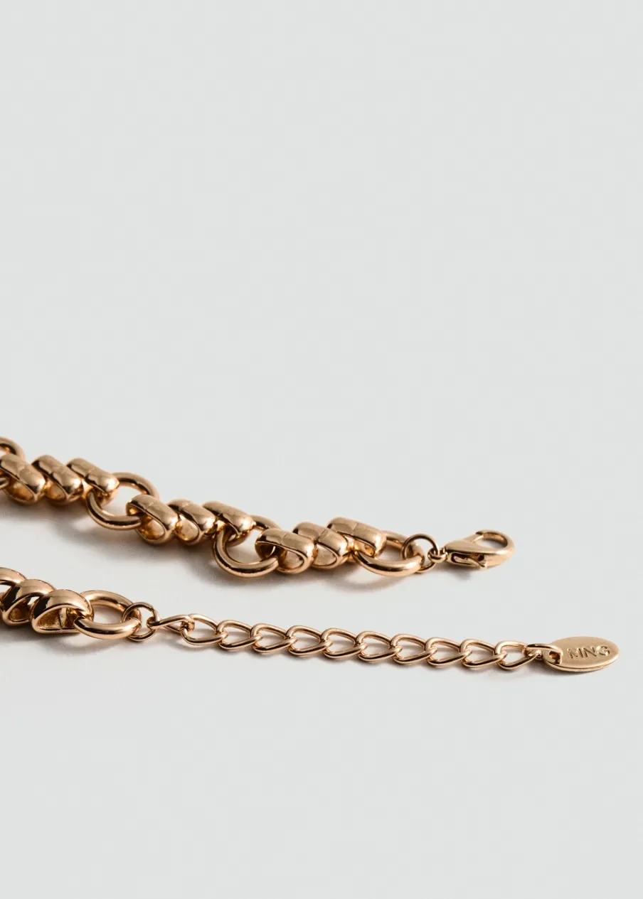 OpisModel z ogniw. W formie łańcucha. Zapięcie na łańcuszek i karabińczyk.