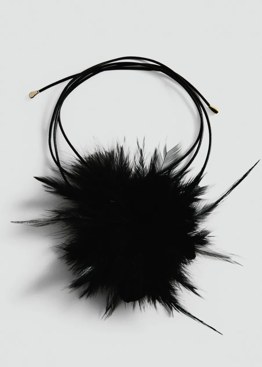 OpisW stylu choker. Wisior na sznurku. Ozdoba z piór.