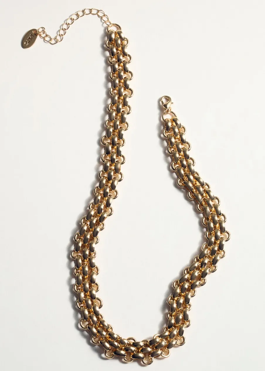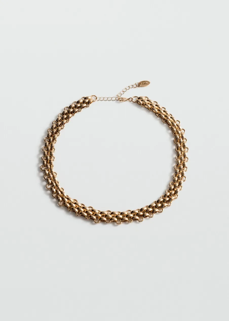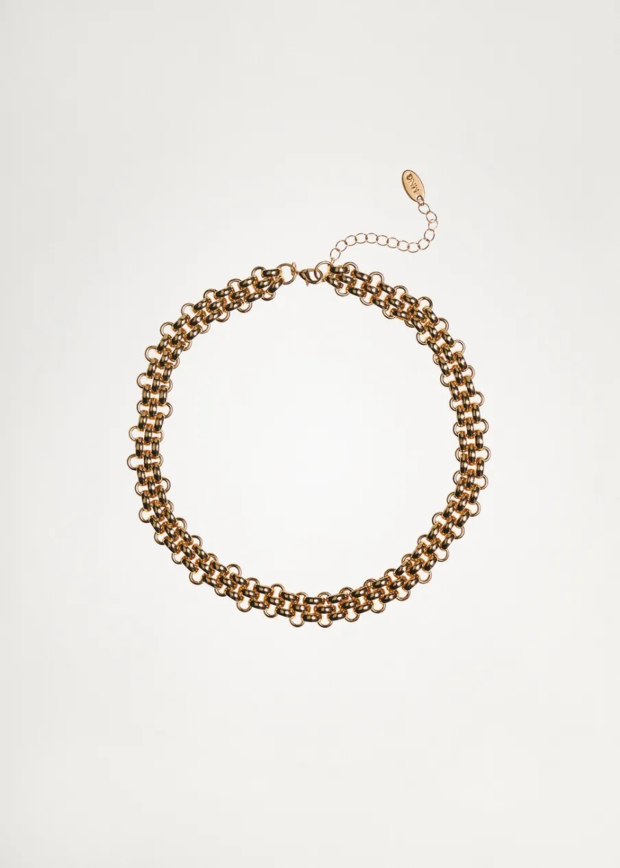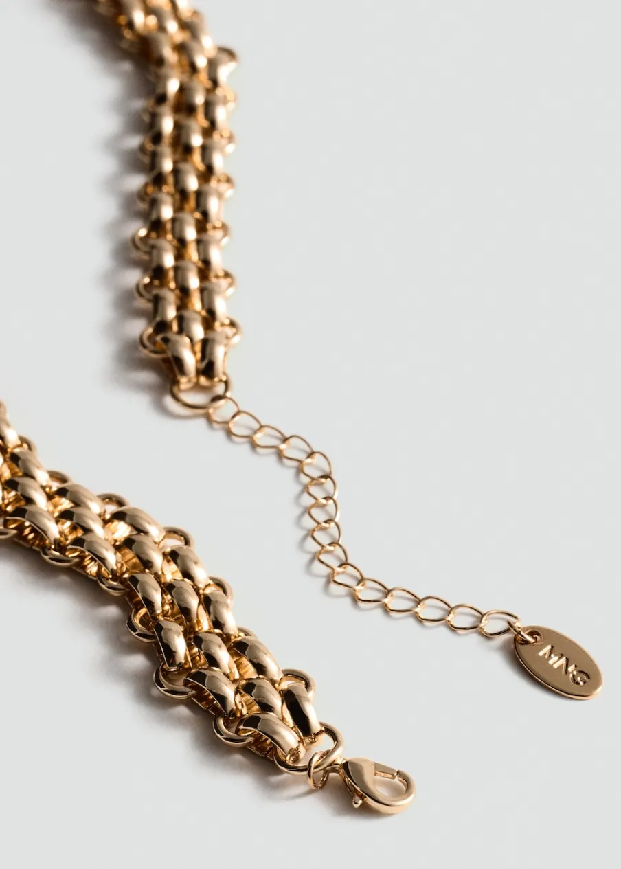Średni rozmiar. Model z ogniw. Szeroki fason. Zapięcie na łańcuszek i karabińczyk.