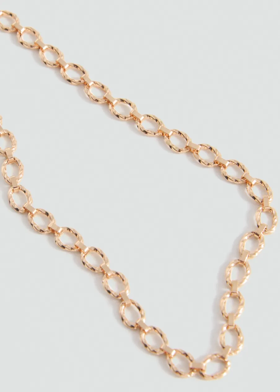 Krótki krój. Splecione łańcuszki. Zapięcie na łańcuszek i karabińczyk.
