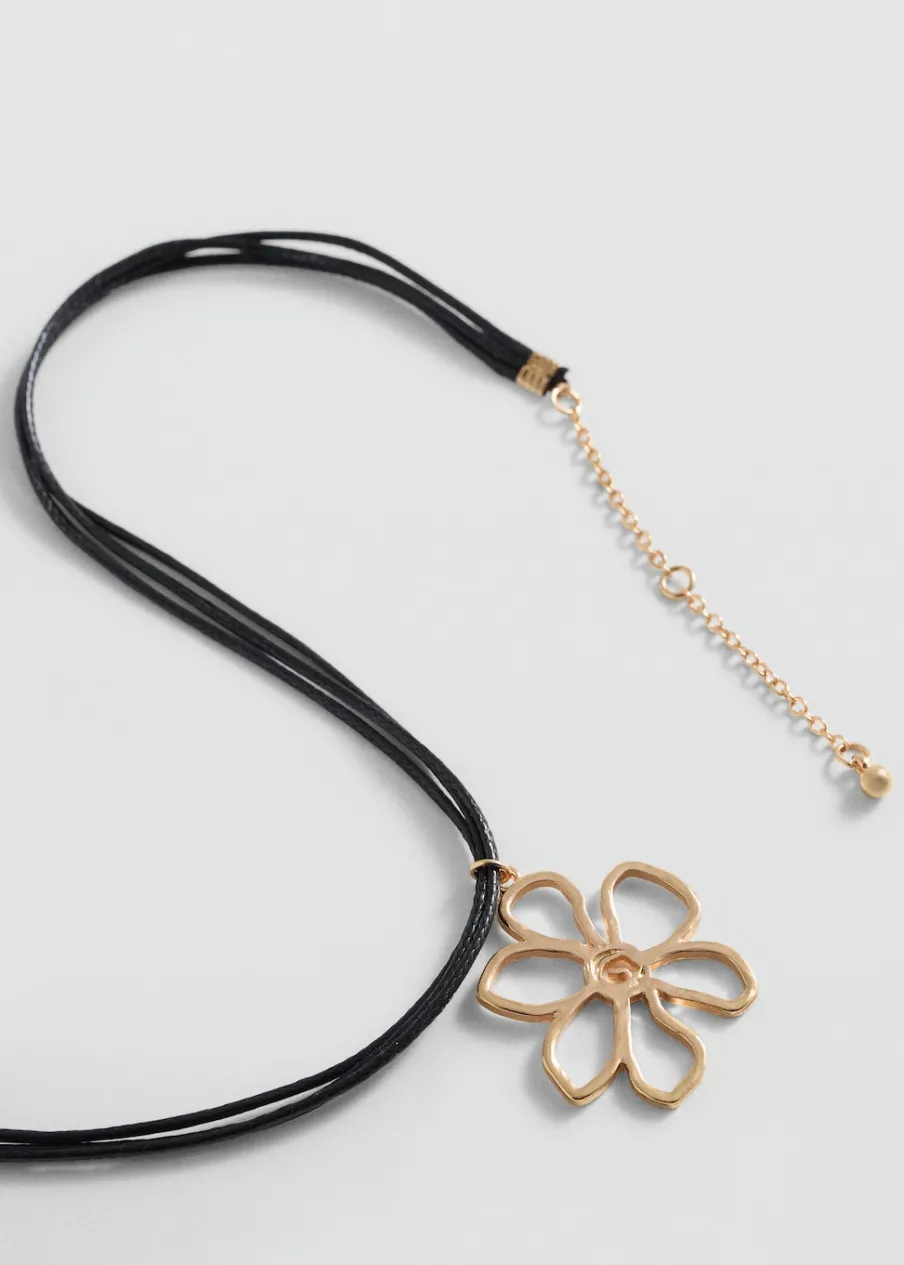 OpisZapięcie na łańcuszek i karabińczyk. Model ze sznurka. Zawieszka kwiat.