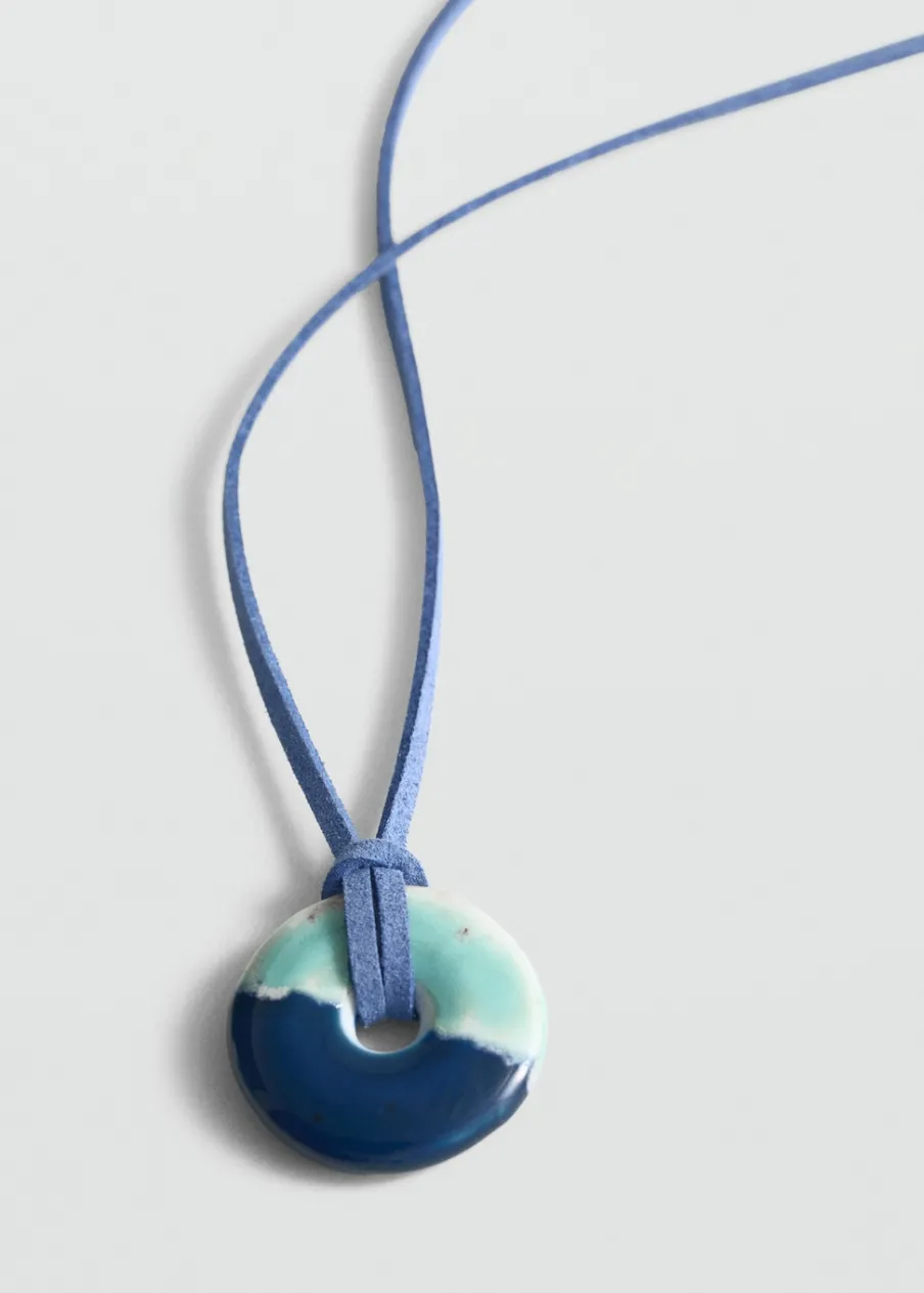 Ozdobny wisior. Regulowany sznurek. Zapięcie ze sznurkiem do regulacji.