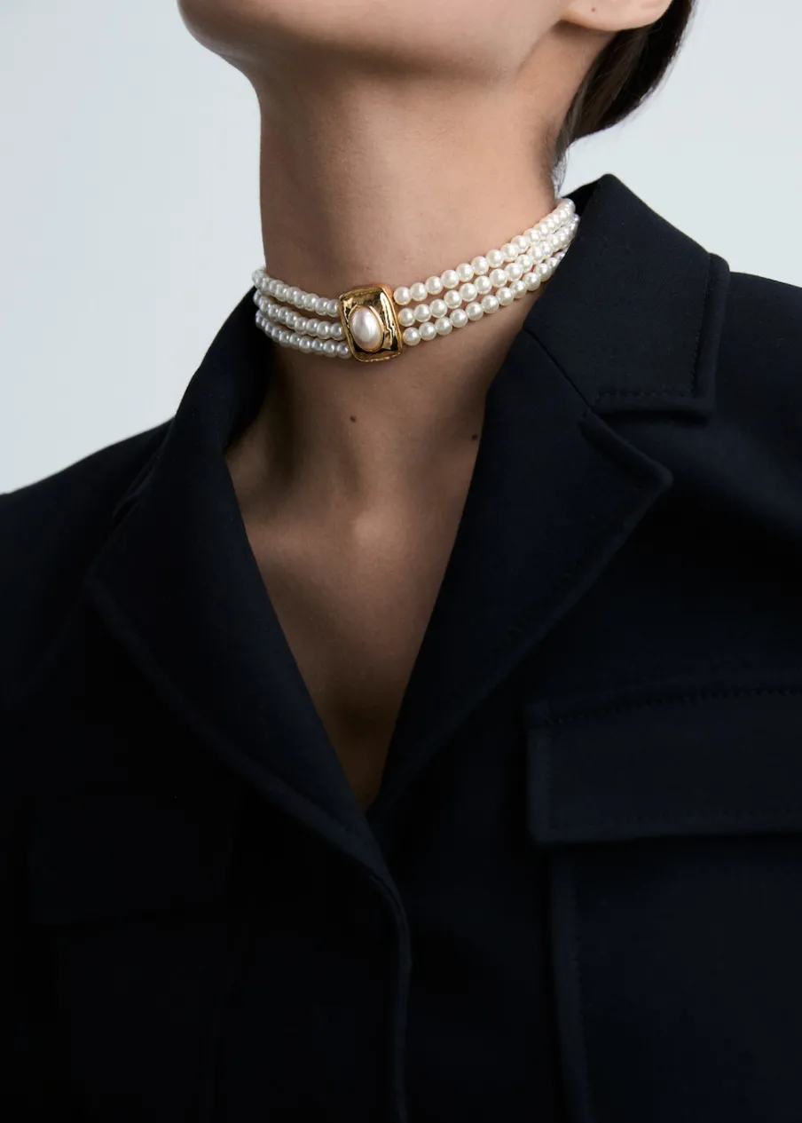 OpisZ perłami. Trzy łańcuszki. Zapięcie na łańcuszek i karabińczyk.
