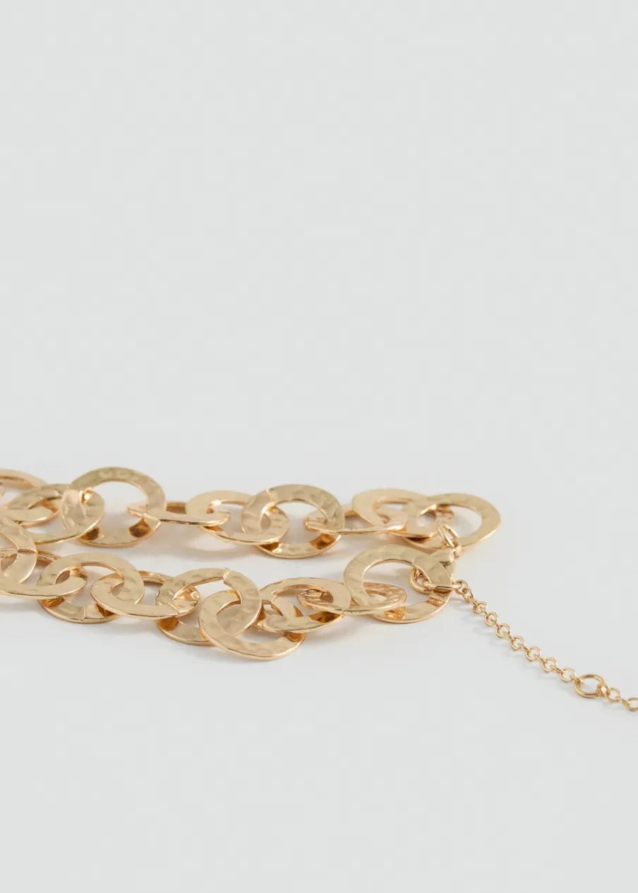 Krótki krój. Pleciona konstrukcja. Kształt koła. Zapięcie na łańcuszek i karabińczyk.