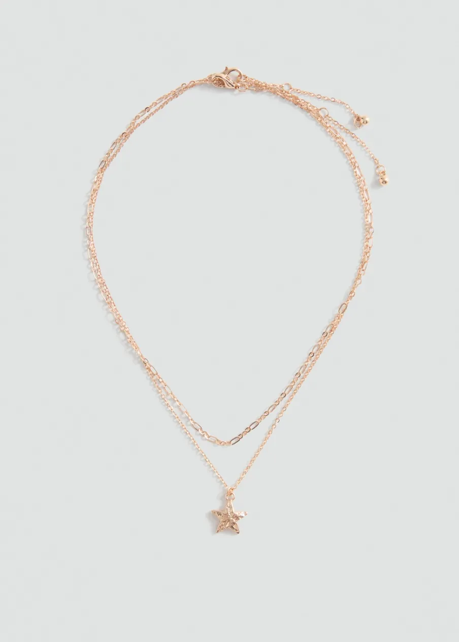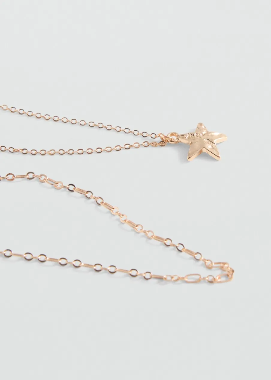 Krótki krój. Cienkie łańcuszki. Wisior w kształcie gwiazdy.