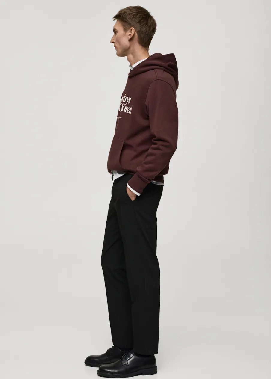 Krój regular. Kaptur. Tkanina mieszanka bawełny. Nadrukowany napis z przodu. Prążkowane wykończenia. Kieszenie kangurka. Model ma 185 cm wzrostu i nosi rozmiar M.