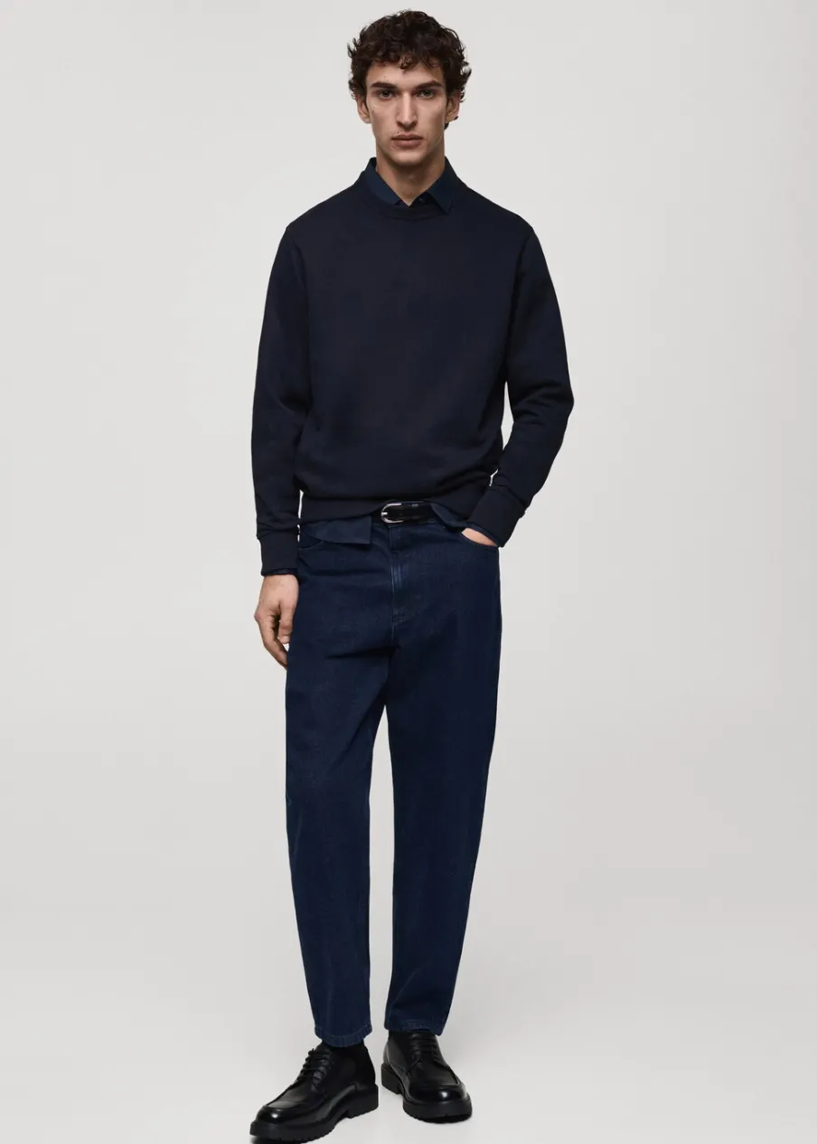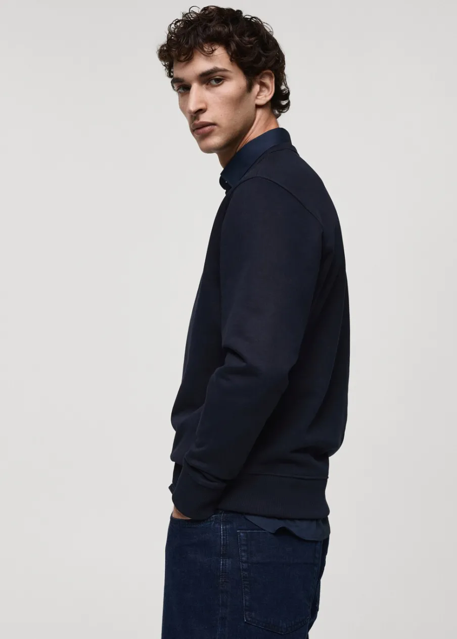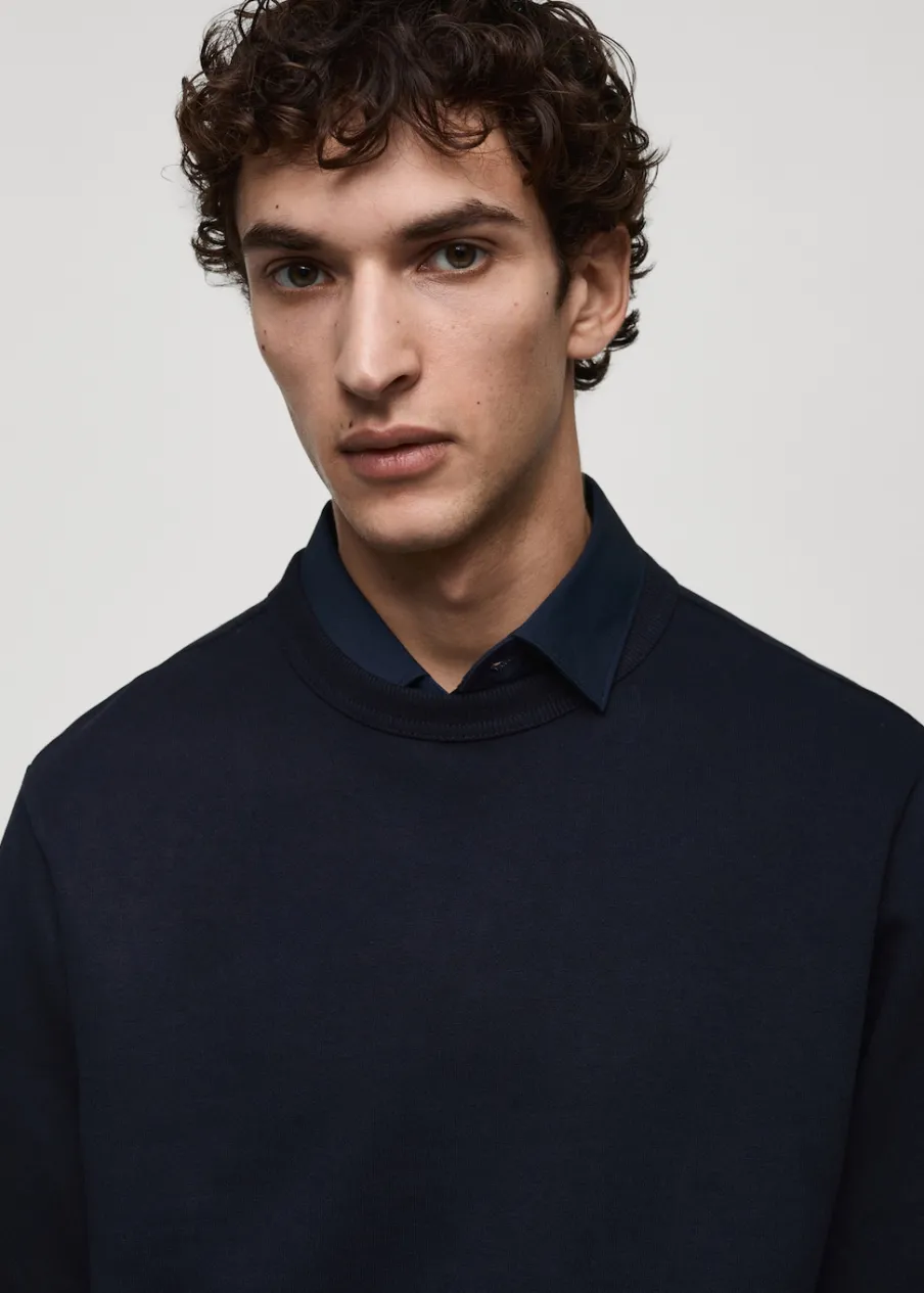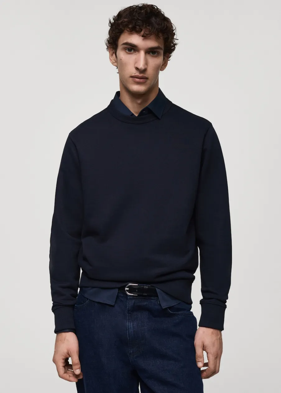 Kolory szary i brązowy są dostępne wyłącznie online. Krój regular. Tkanina mieszanka bawełny. Okrągły dekolt. Podszewka z czesanej bawełny. Prążkowane wykończenia. Model ma 185 cm wzrostu i nosi rozmiar M.
