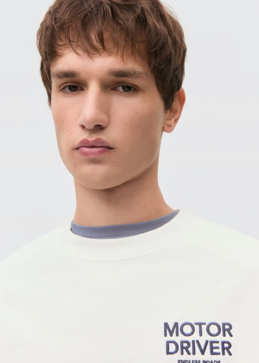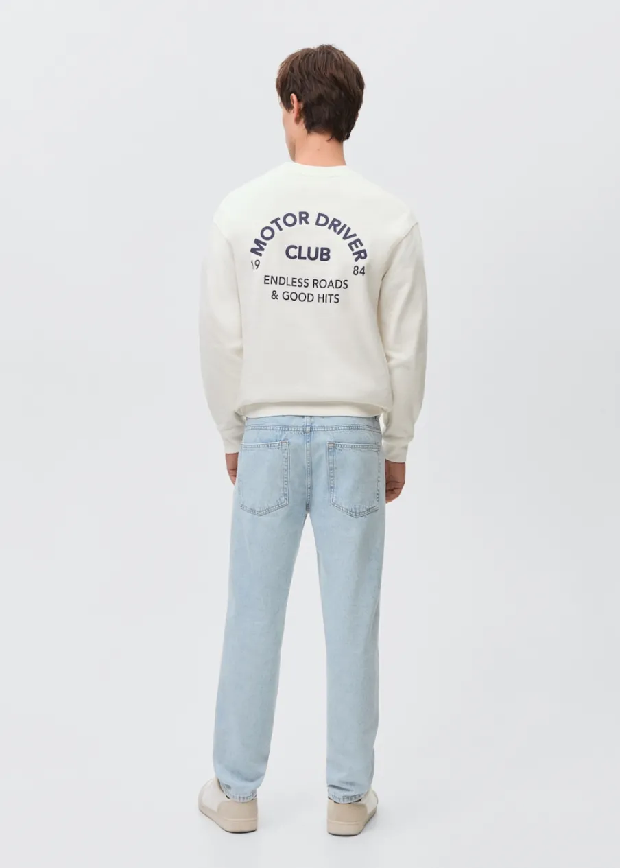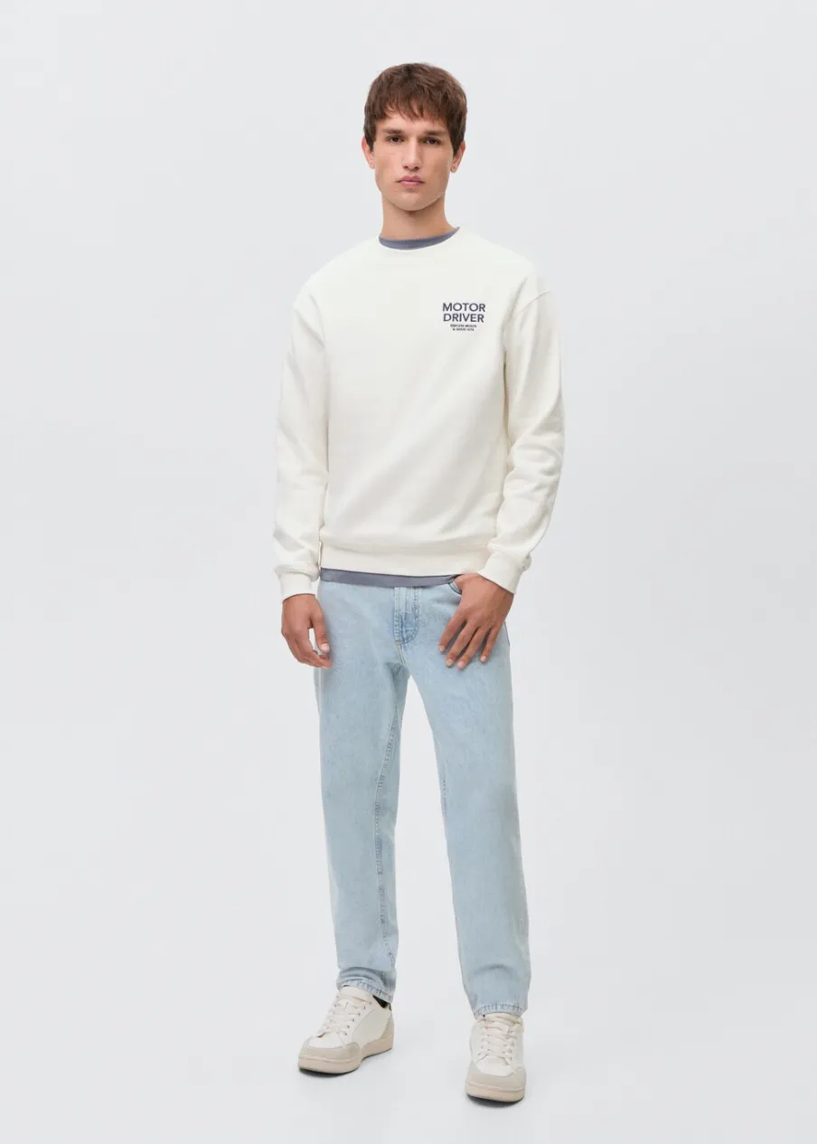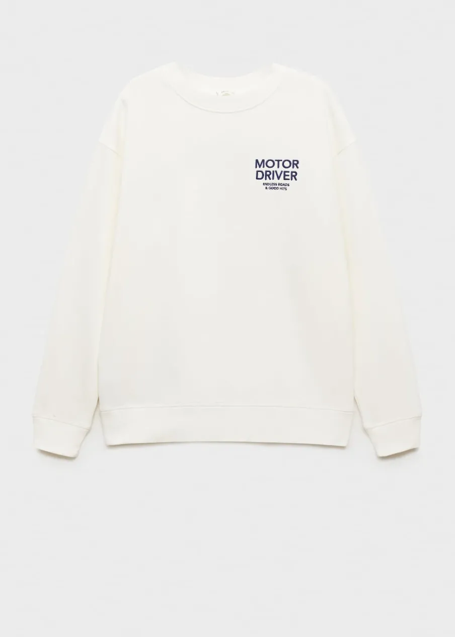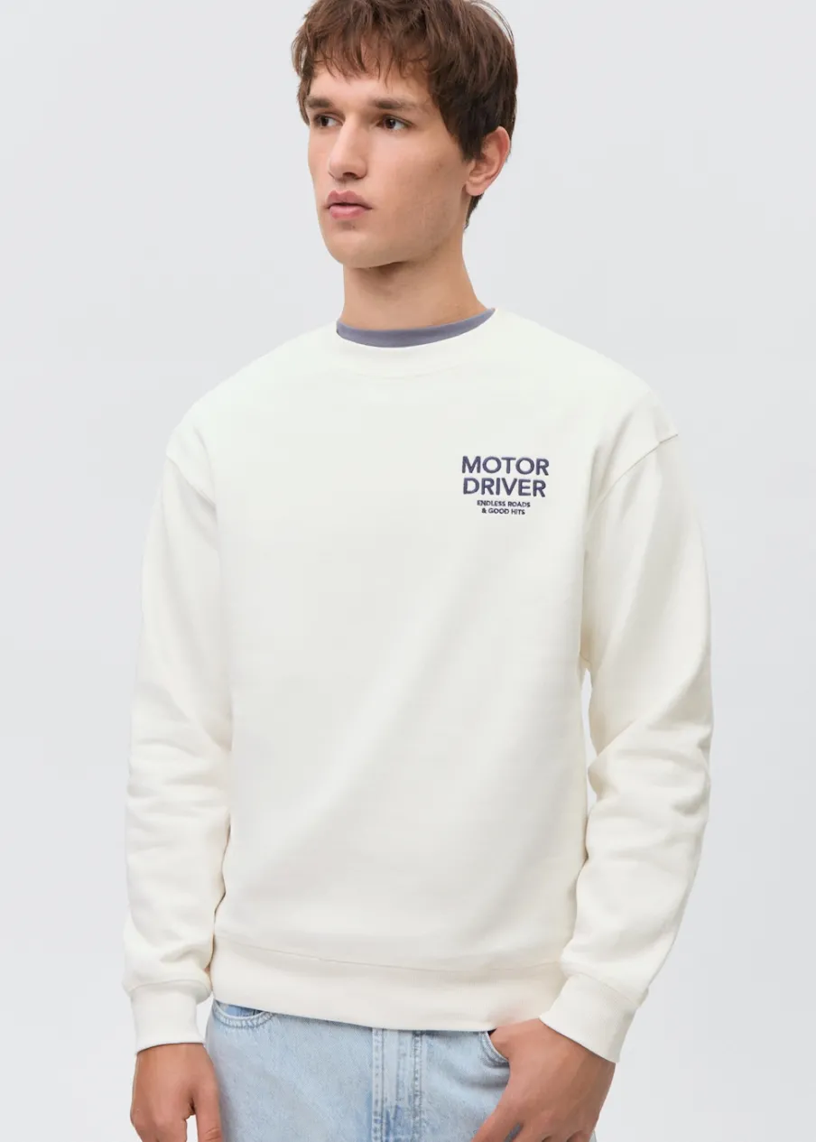 Bawełna 100%. Model prosty. Długi rękaw. Okrągły dekolt. Nadruk tekstu. Mankiety i dół wykończone ściągaczem.