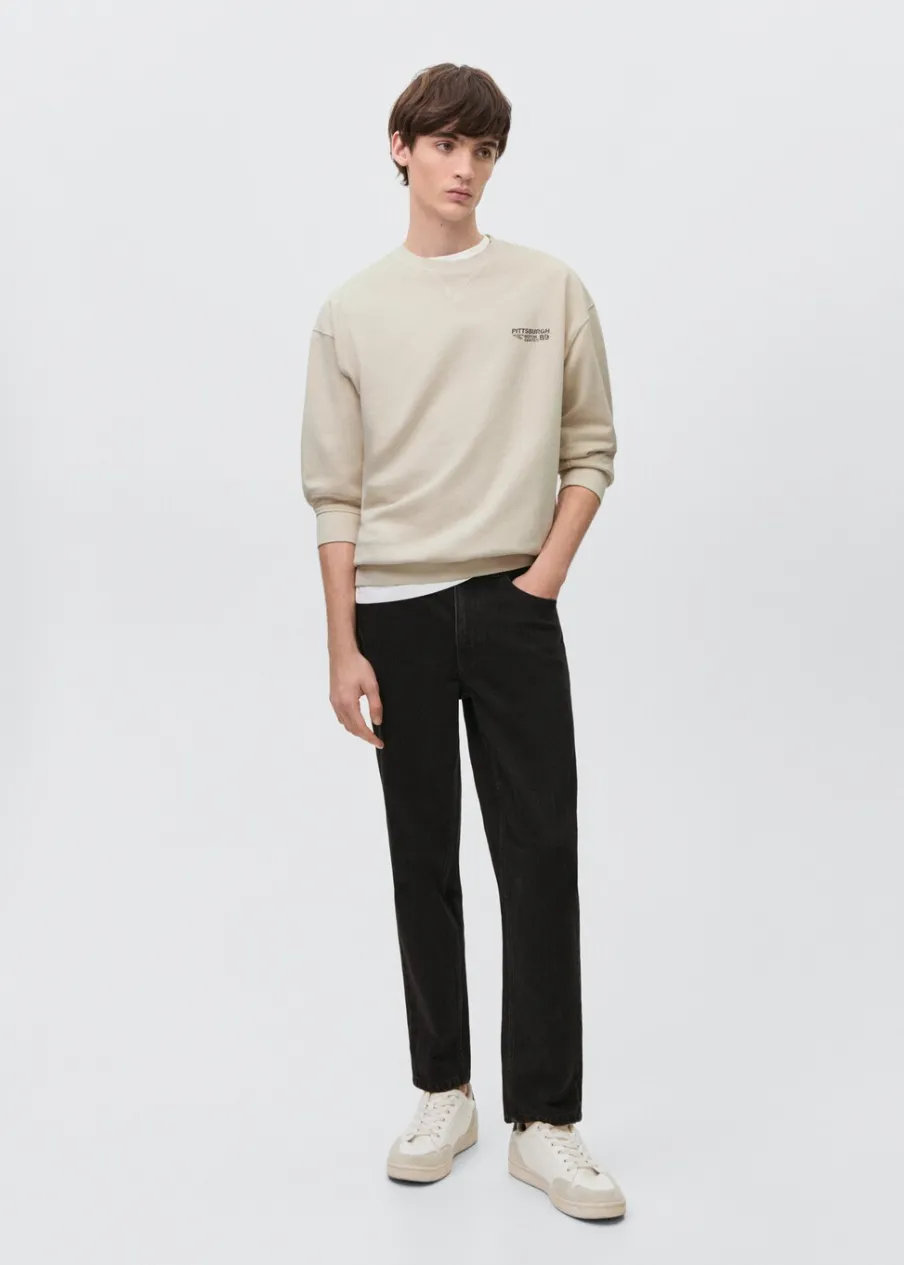 Tkanina z 100% bawełny. Nadruk tekstu. Krój regular. Okrągły dekolt. Długi rękaw.