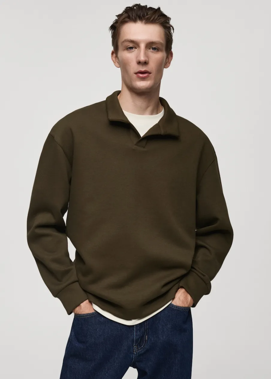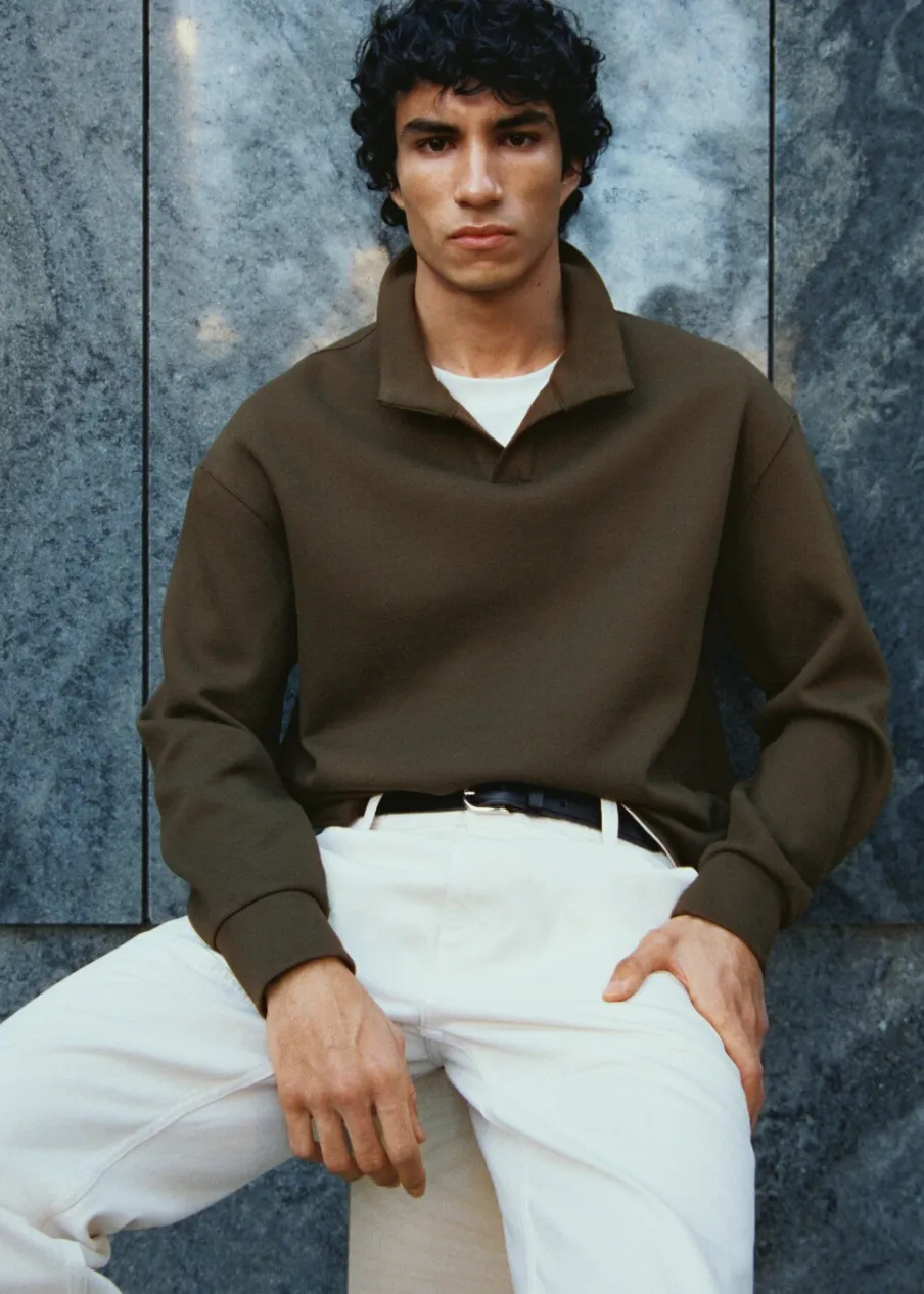 Kolor écru dostępny tylko online. Dzianina dresowa. Relaxed fit. Kołnierzyk polo. Mankiety i dół wykończone ściągaczem. Prosty dół z rozcięciami po bokach. Model ma 185 cm wzrostu i nosi rozmiar M.