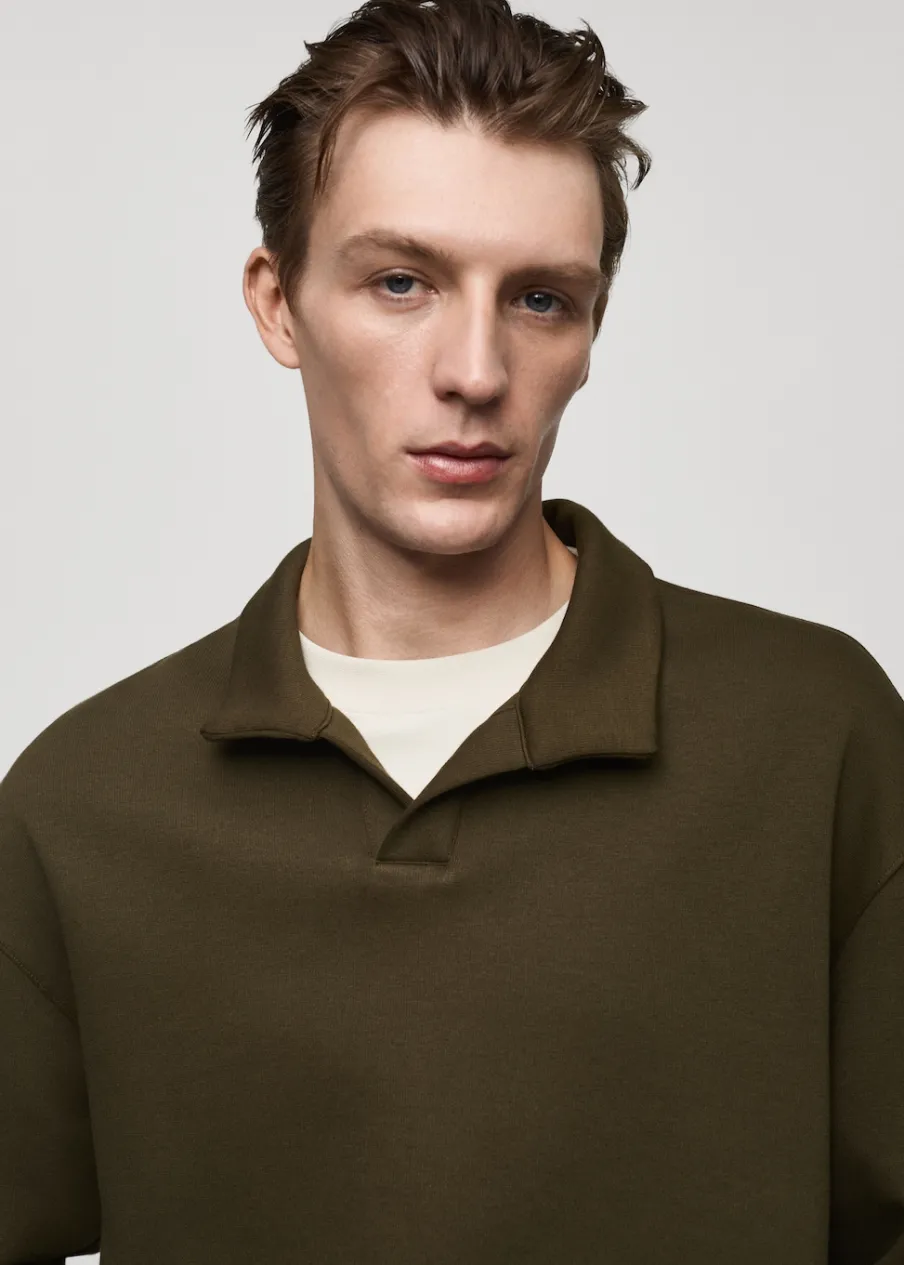 OpisKolor écru dostępny tylko online. Dzianina dresowa. Relaxed fit. Kołnierzyk polo. Mankiety i dół wykończone ś…