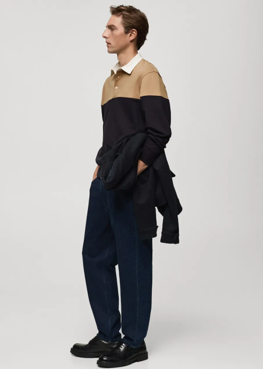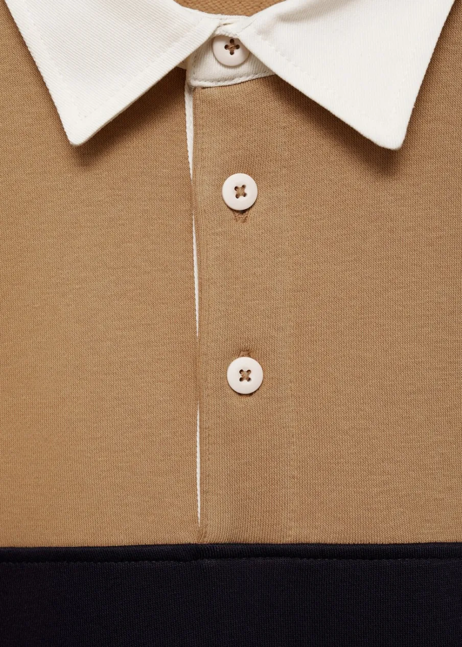Regular fit, pamut anyag, gombbal záródó pólónyak, kétszínű modell, passzés mandzsetta és alj, a modell testmagassága 185 cm és M-es méretet visel.