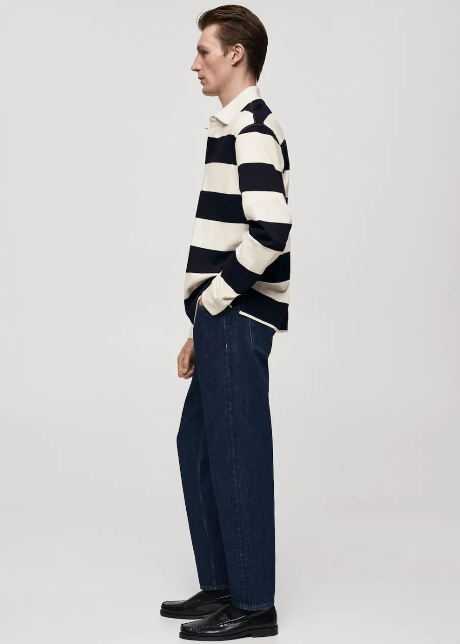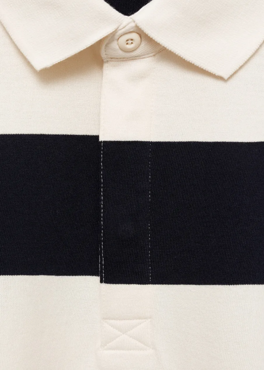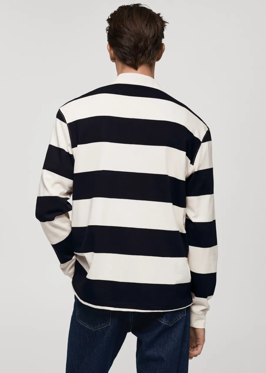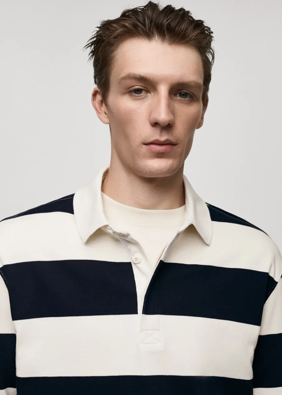 Kolor zielony dostępny tylko online. Tkanina z 100% bawełny. Kołnierzyk polo z zapięciem na guziki. Wzór w dwukolorowe paski. Mankiety wykończone ściągaczem. Model ma 185 cm wzrostu i nosi rozmiar M.