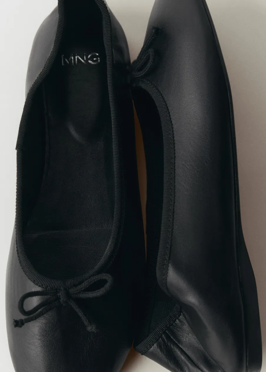 100% skóra bydlęca. Okrągły nosek. Płaska podeszwa. Bez zapięcia. Ozdobna kokardka.