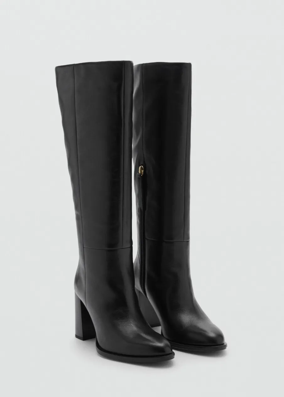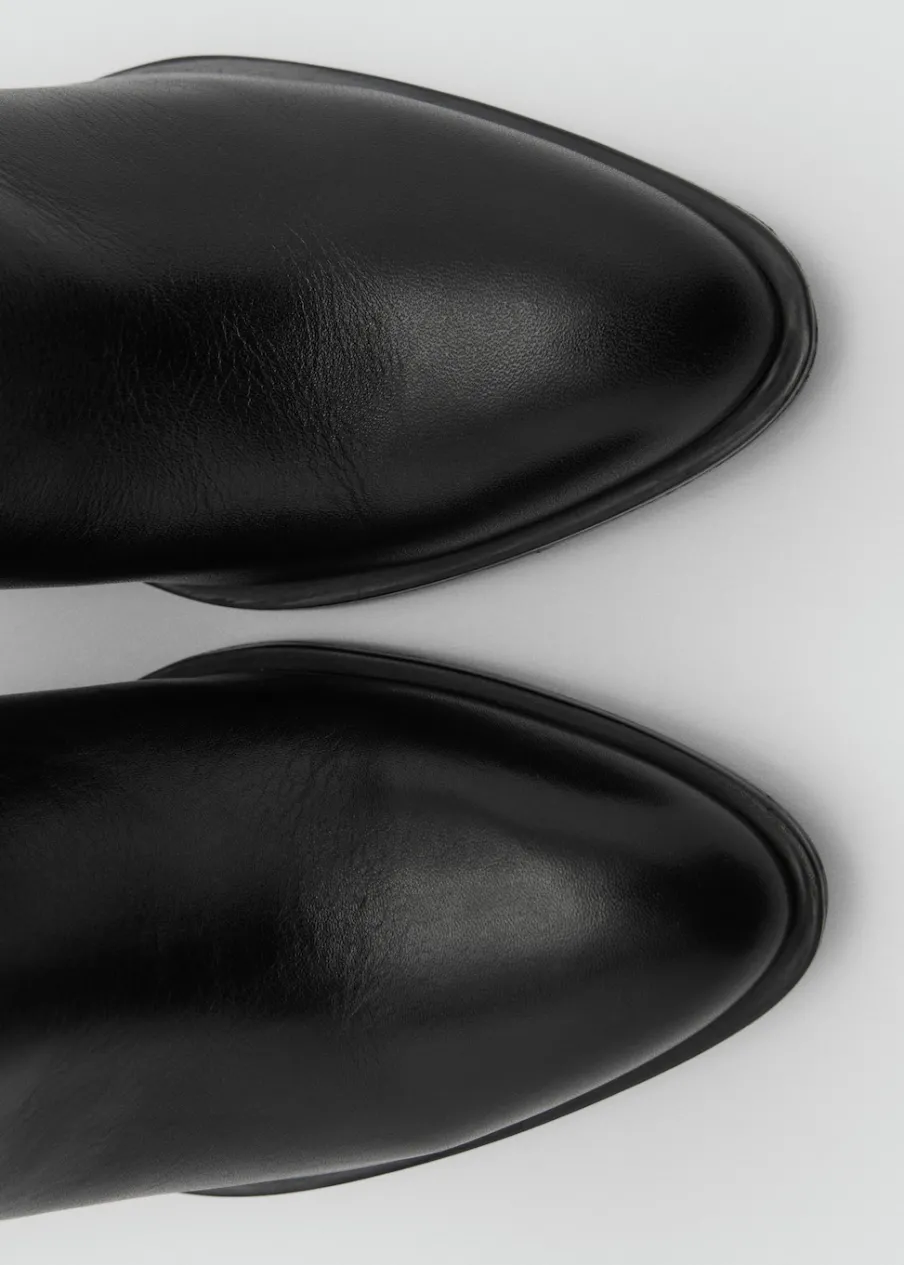100% skóra bydlęca. Obcas klockowy. Spiczaste zakończenie. Zapięcie na zamek z boku. Obcas mierzy 8 cm.