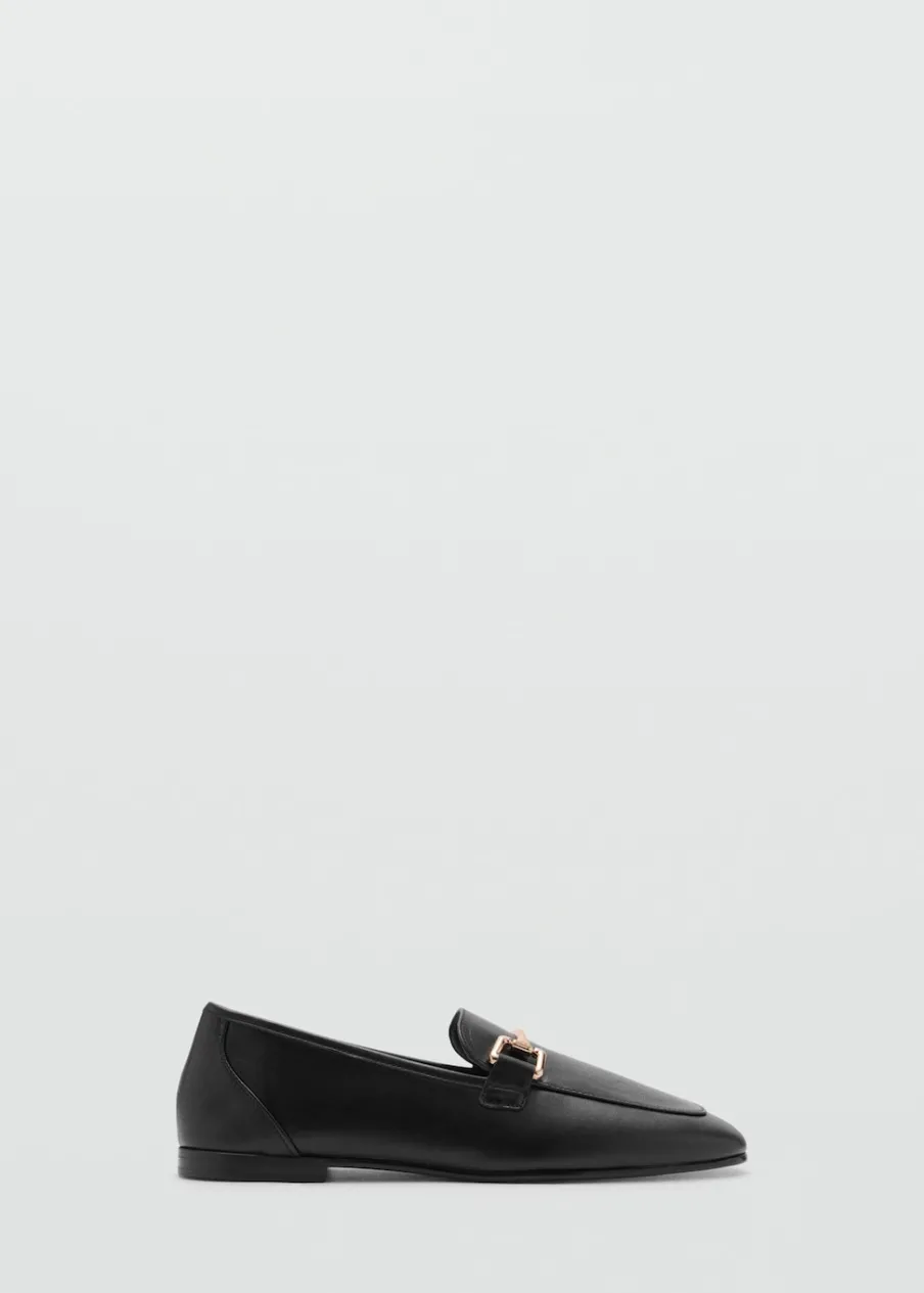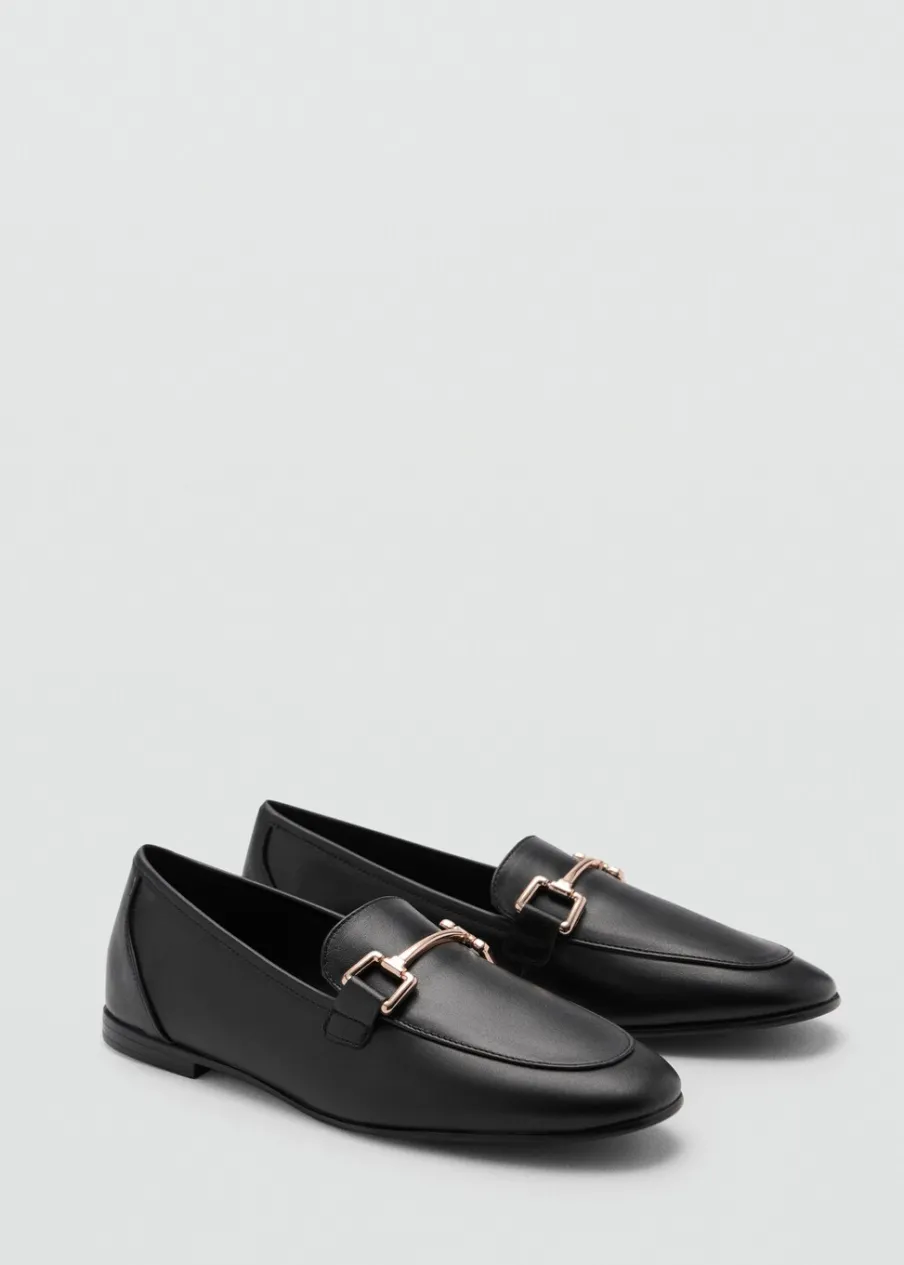 100% skóra bydlęca. Okrągły nosek. Płaska podeszwa. Bez zapięcia. Metalowy element. Wewnętrzna podszewka.