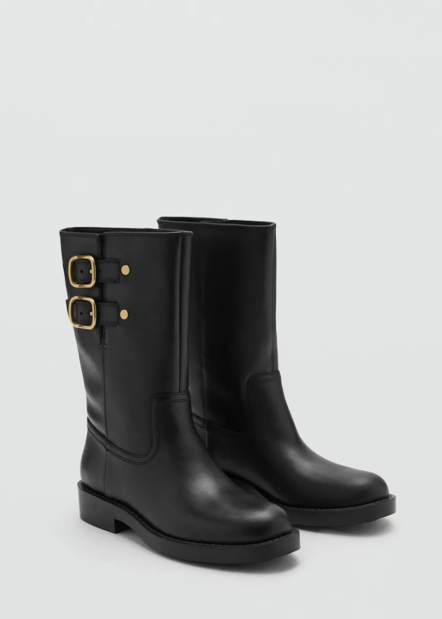 Płaska podeszwa. Okrągły nosek. Ozdobne klamry. Bez zapięcia. 100% skóra bydlęca.