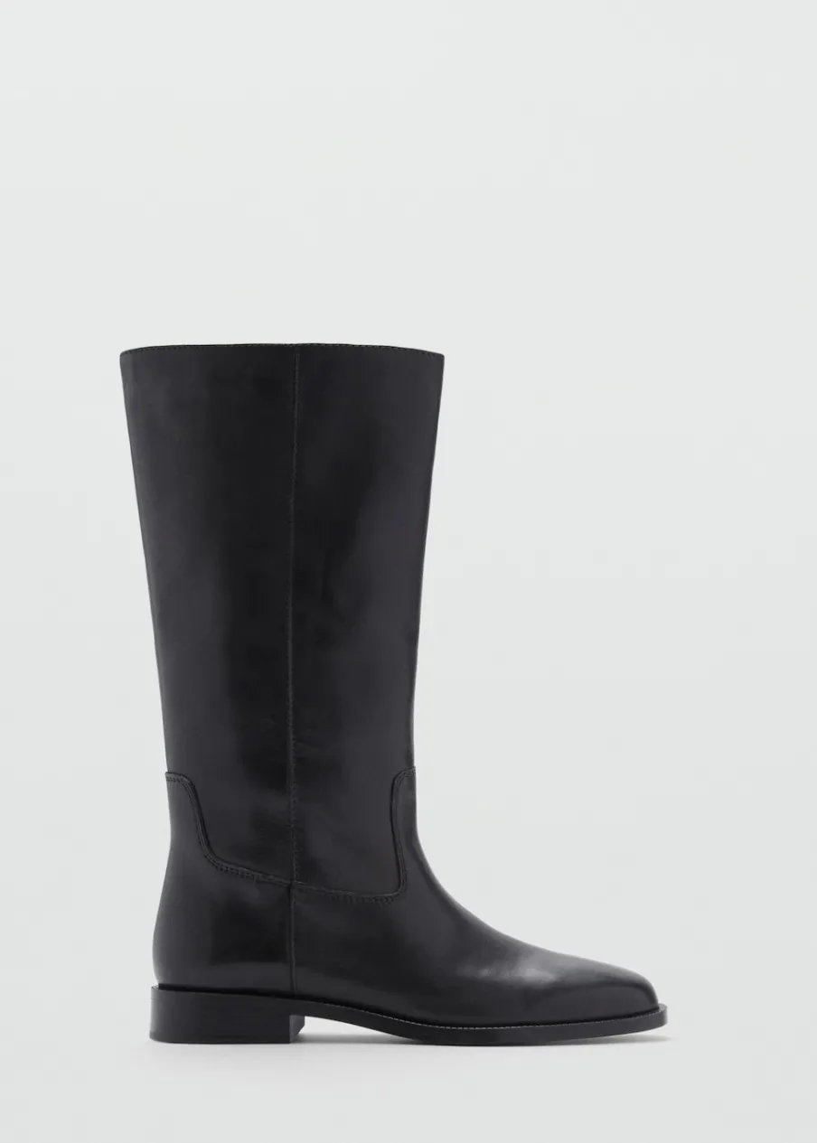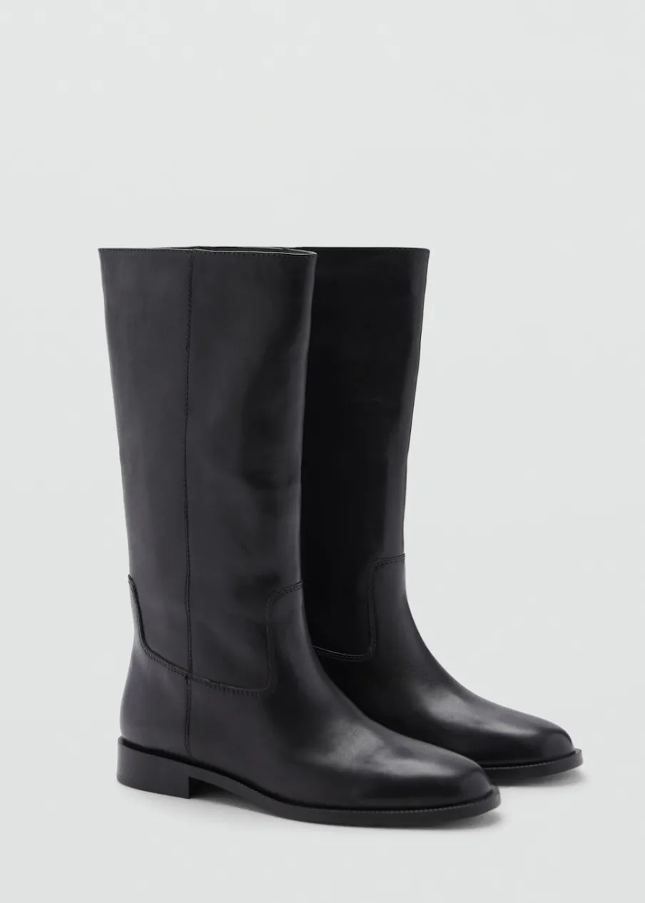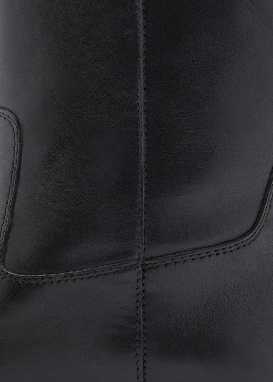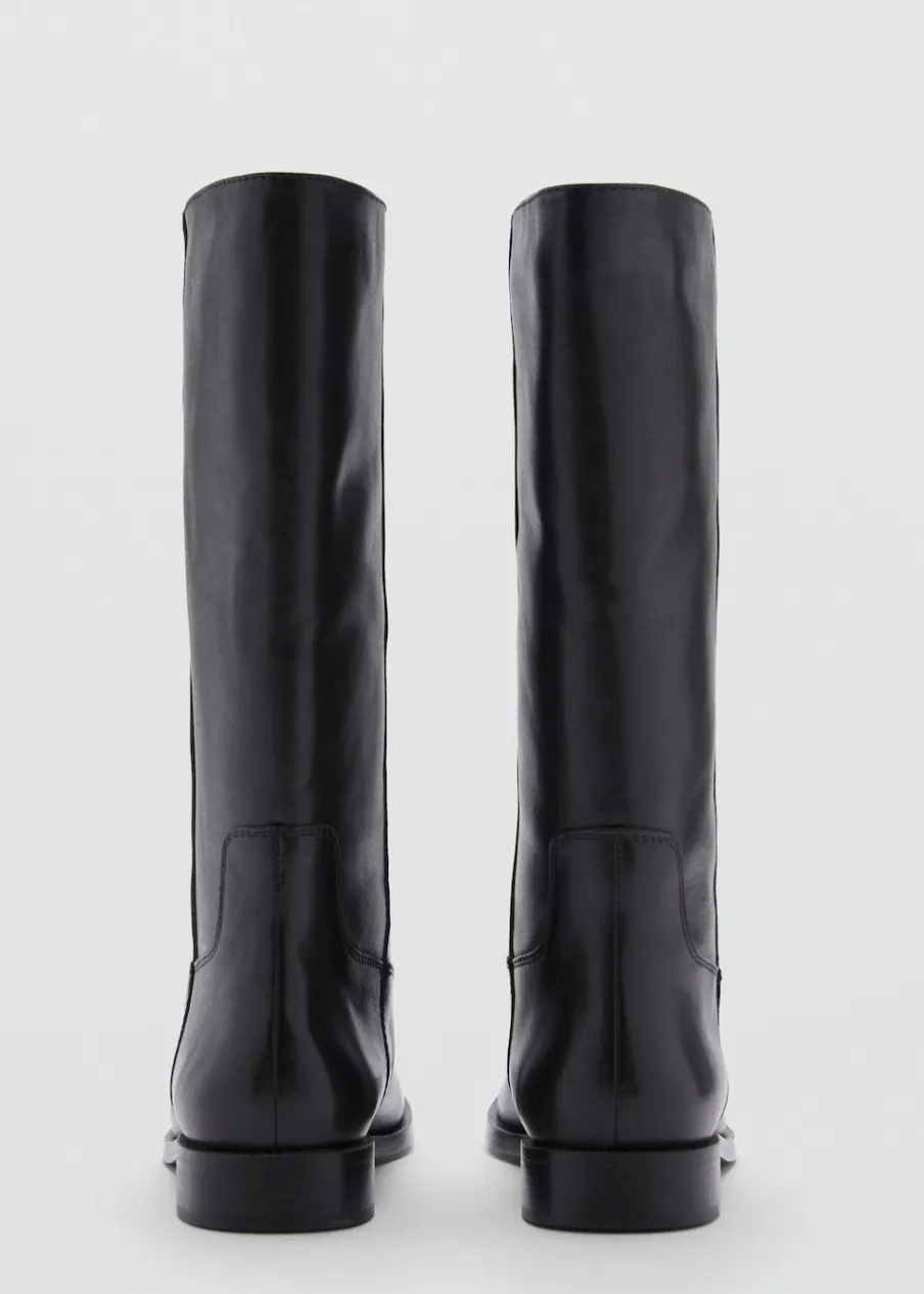 100% skóra bydlęca. Płaska podeszwa. Okrągły nosek. Wysoka cholewka. Bez zapięcia. Wewnętrzna podszewka.