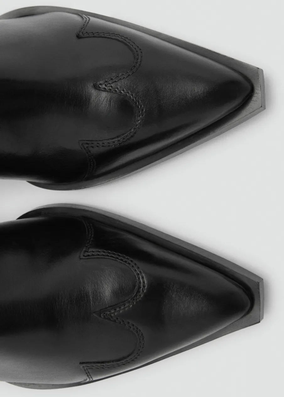 Opis100% skóra kozia. W kowbojskim stylu. Spiczaste zakończenie. Obcas mierzy 5 cm. Bez zapięcia.