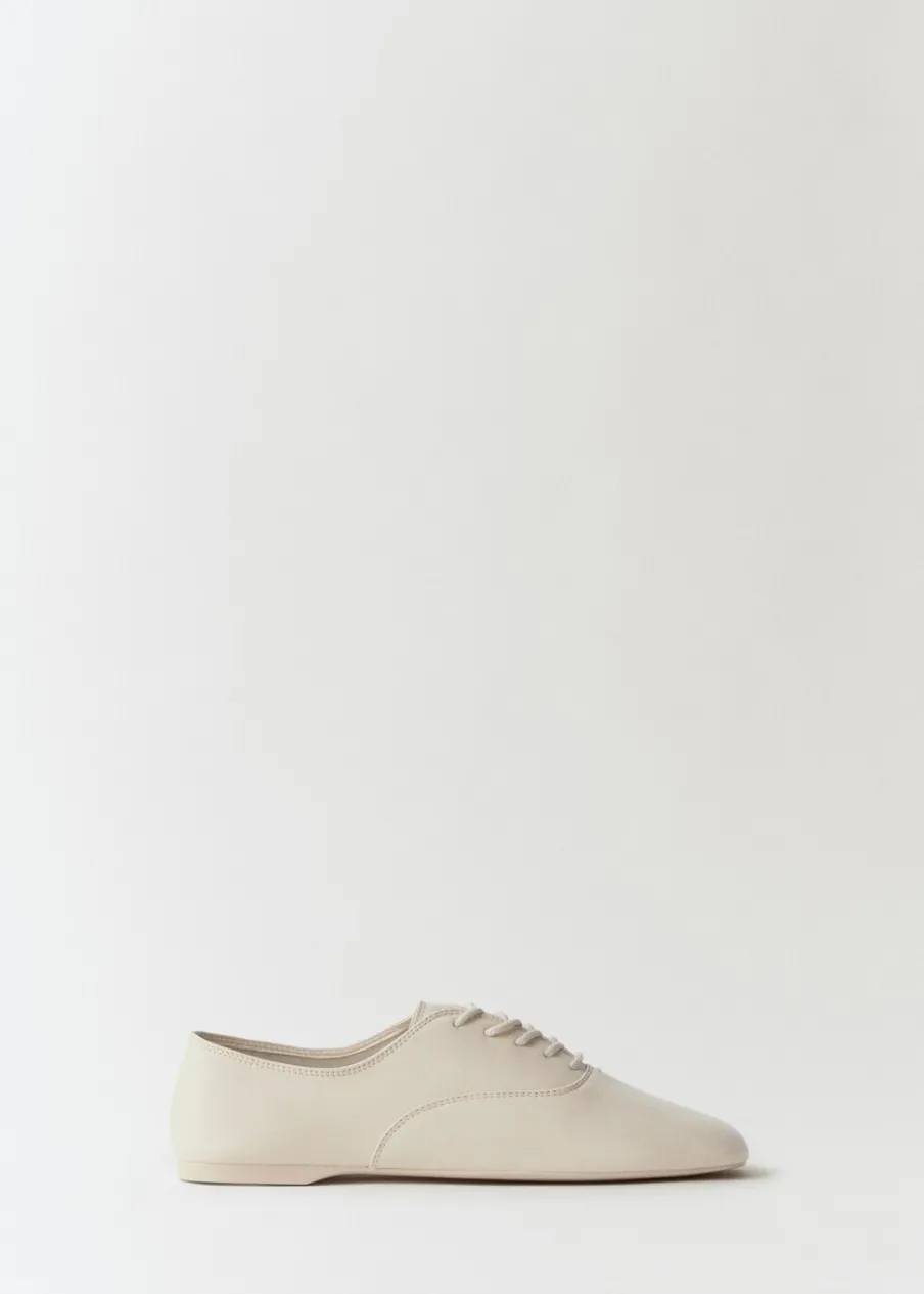 OpisSkóra kozia. Płaska podeszwa. Okrągły nosek. Wiązanie na sznurówki.