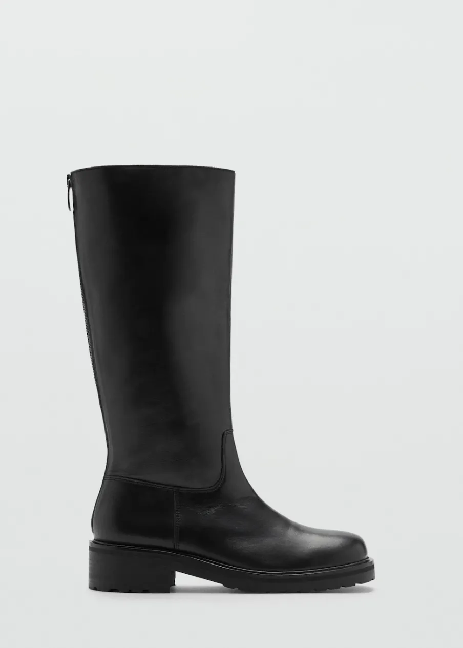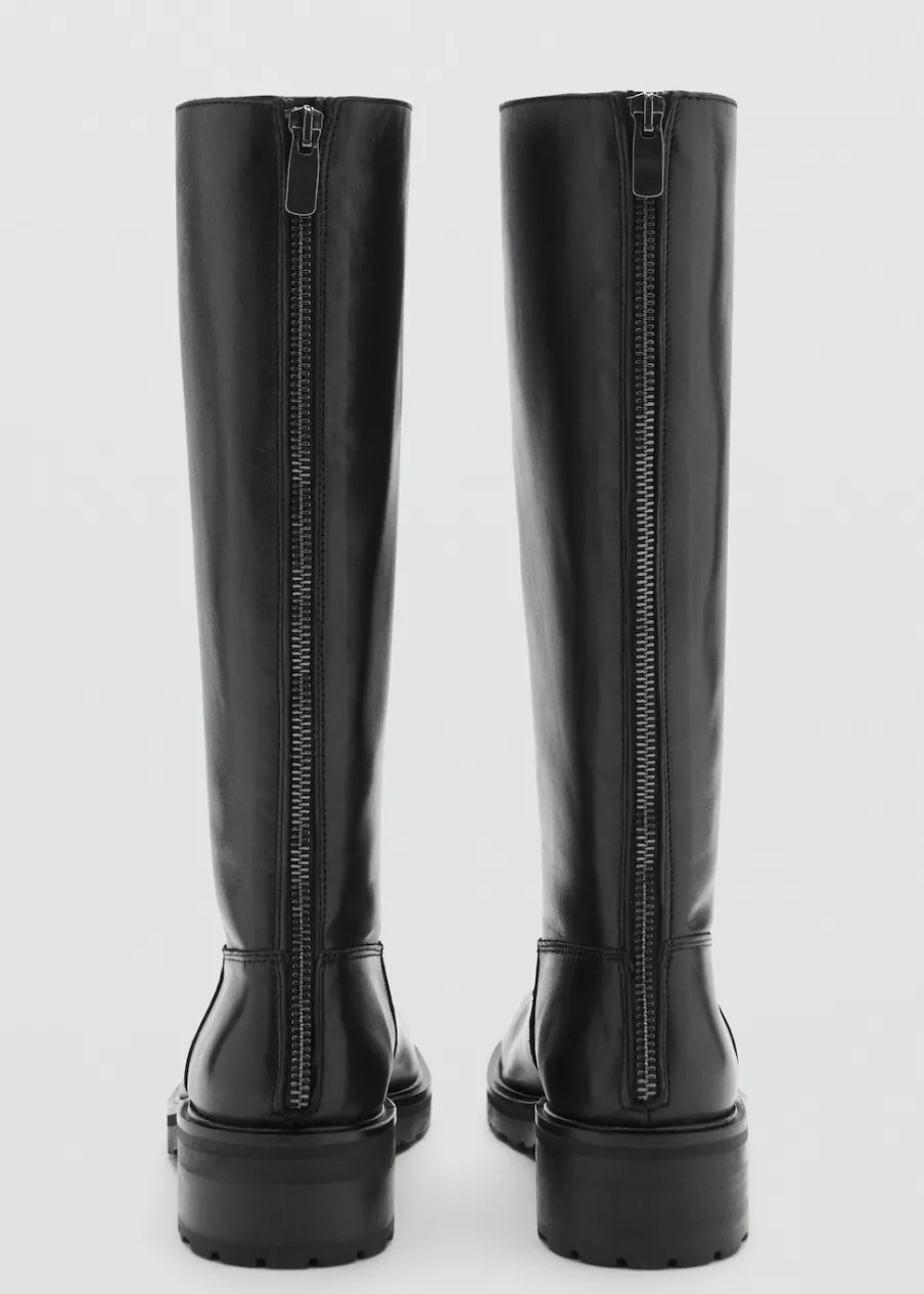 100% skóra nappa. Okrągły nosek. Wysoka cholewka. Platforma. Zapięcie z tyłu na suwak.
