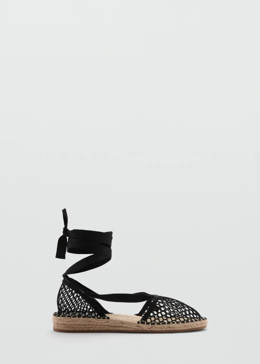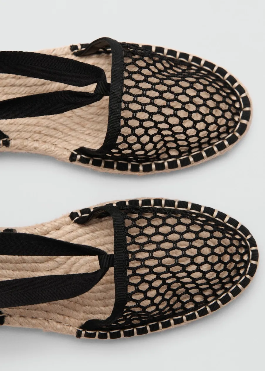 Espadryle. Okrągły nosek. Ażurowy model. Płaska podeszwa. Regulowane wiązanie.