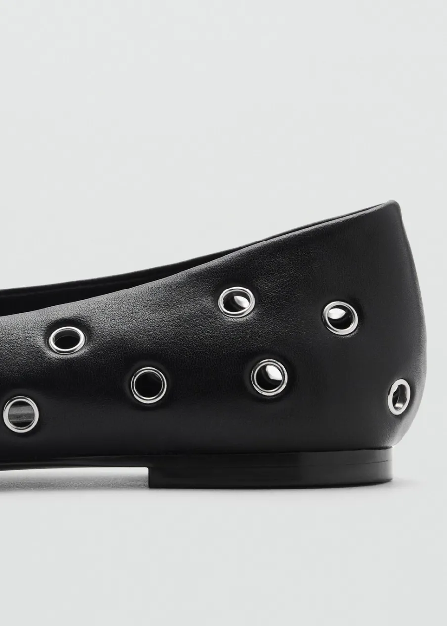 Efekt skóry. Model dziurkowany. Płaska podeszwa. Okrągły nosek. Bez zapięcia. Wewnętrzna podszewka.