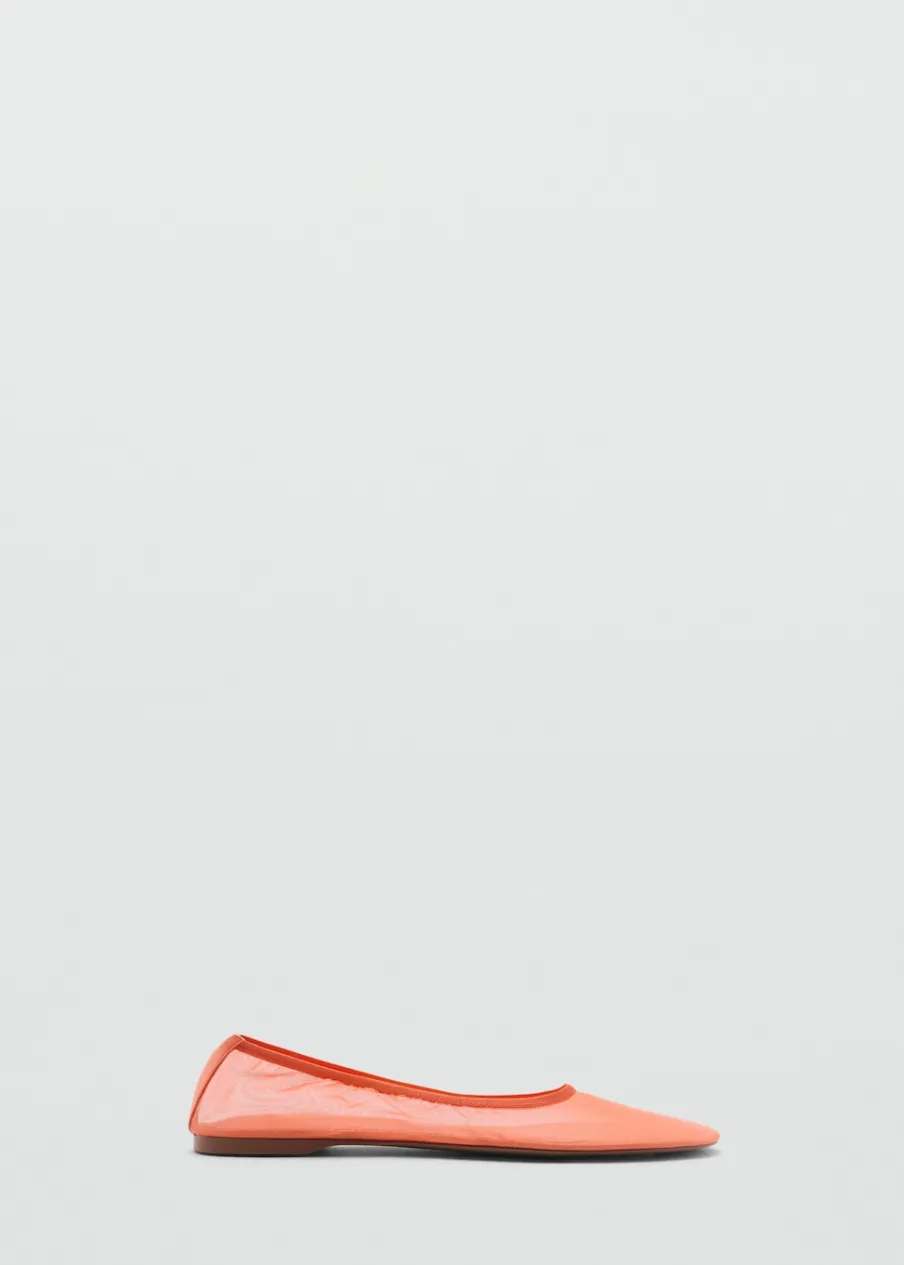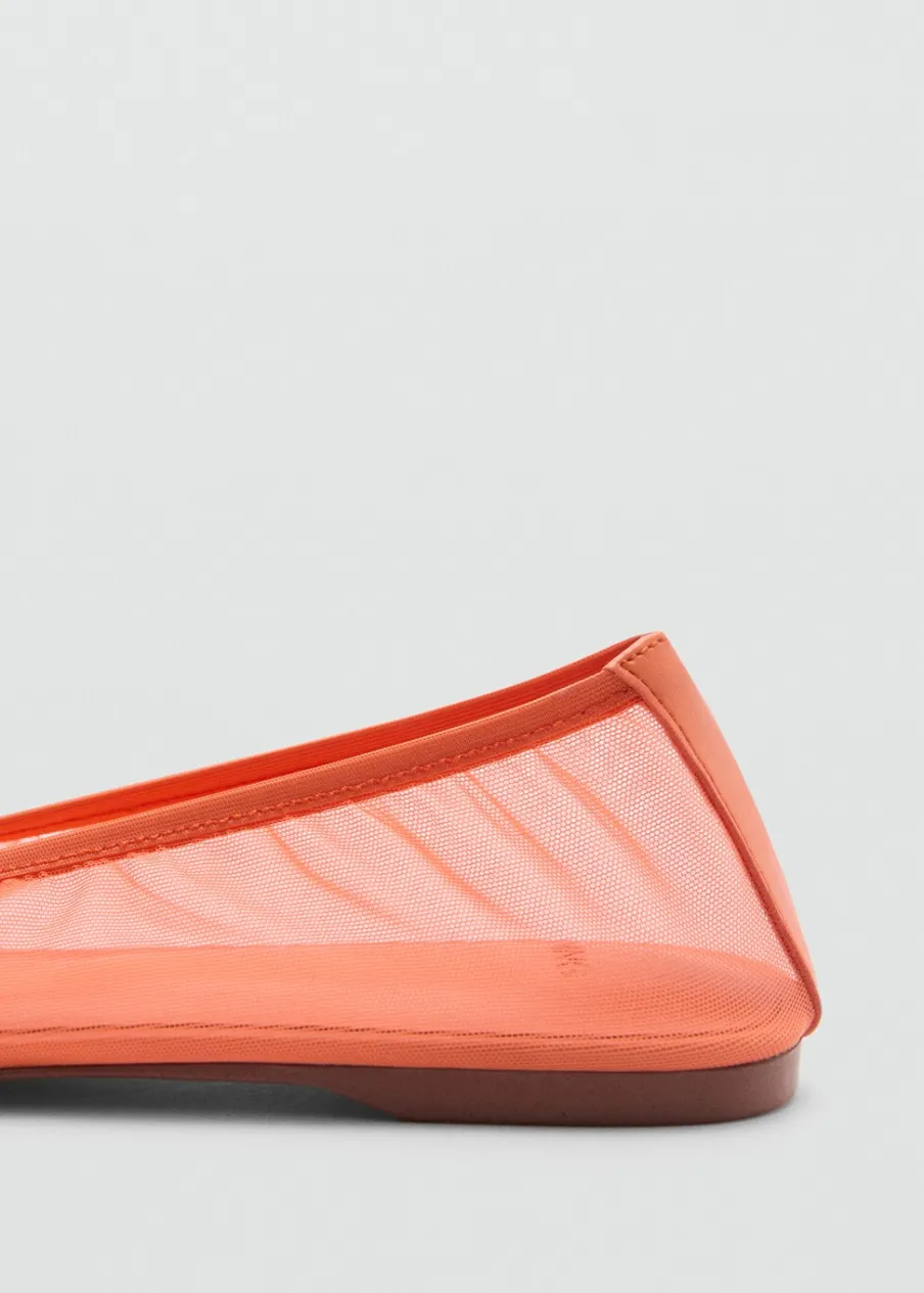 Siateczkowa tkanina. Okrągły nosek. Płaska podeszwa. Bez zapięcia.