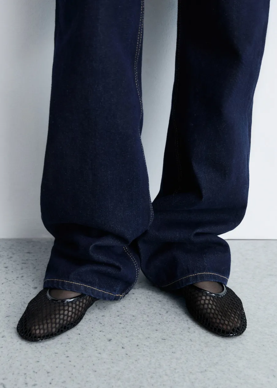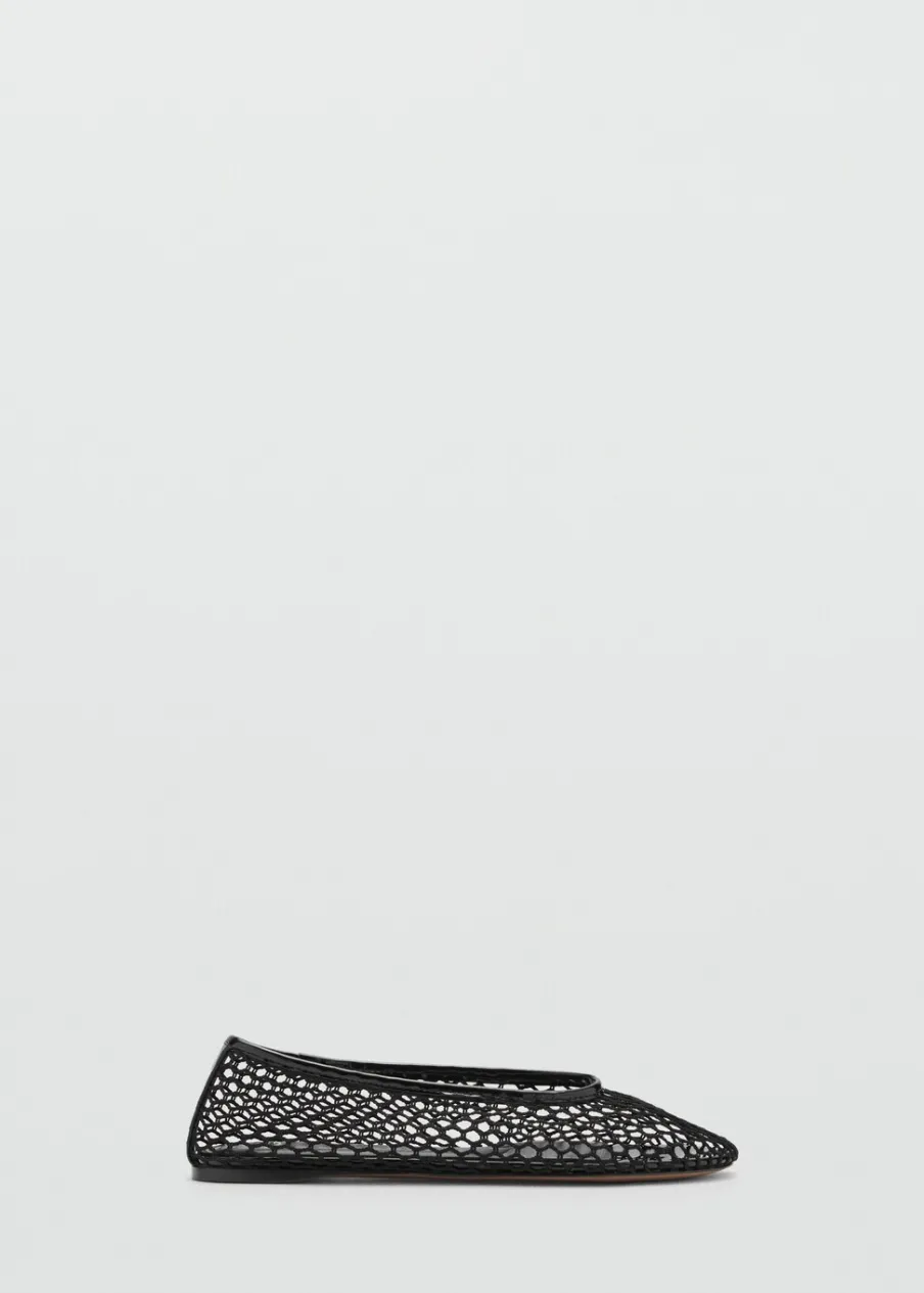 Siateczkowa tkanina. Płaska podeszwa. Okrągły nosek. Bez zapięcia.
