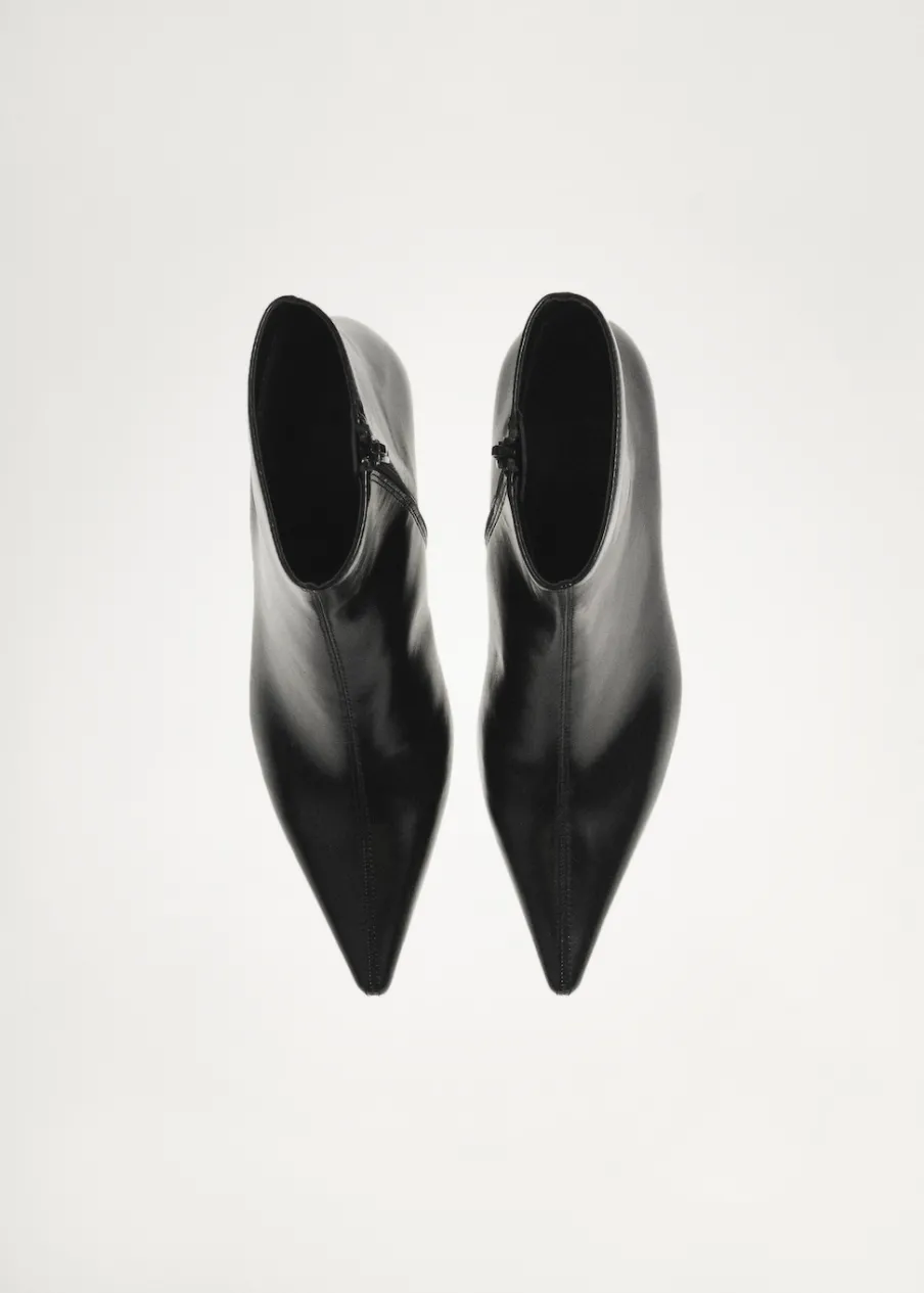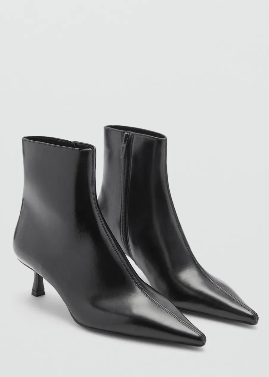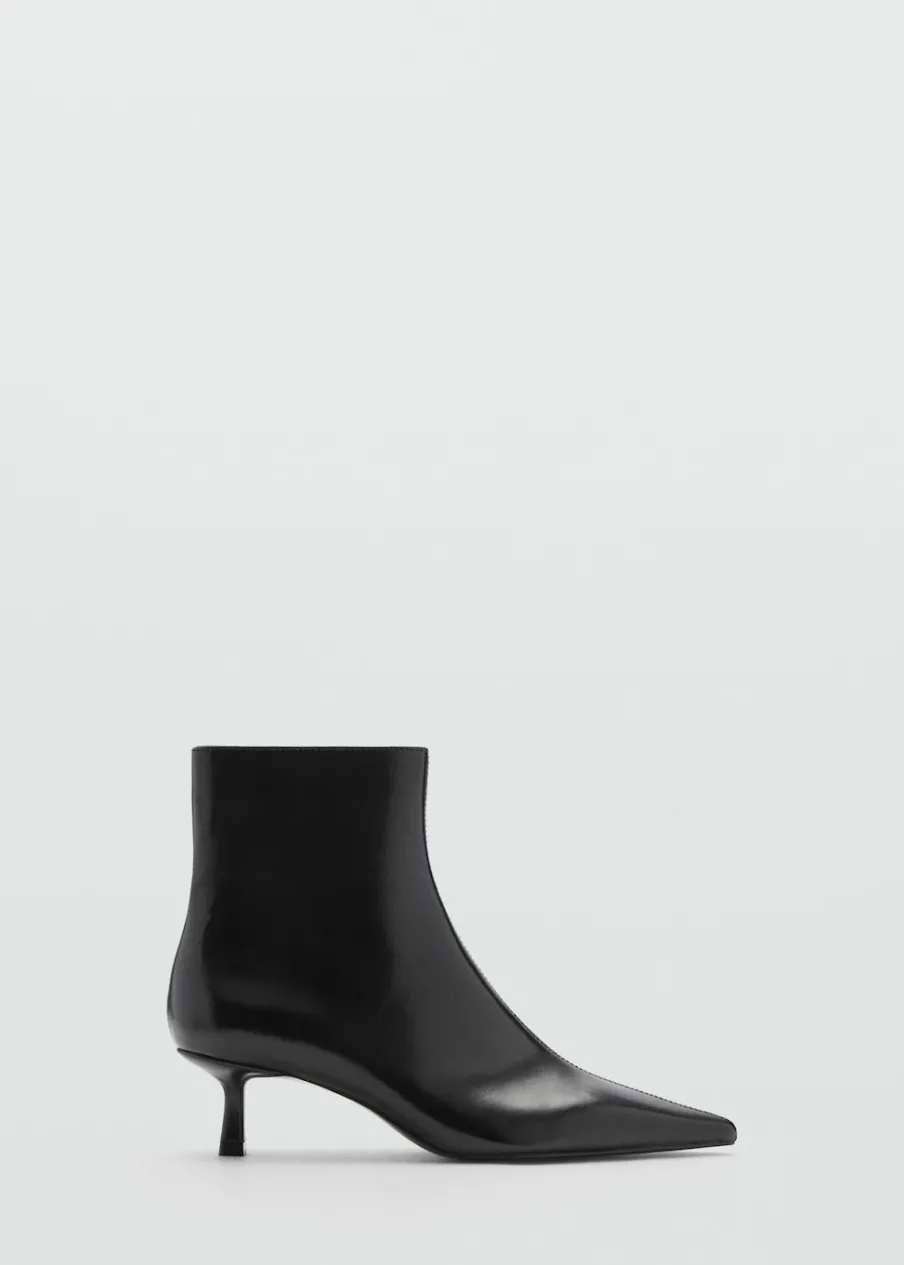 OpisEfekt skóry. Spiczaste zakończenie. Obcas typu kitten. Obcas mierzy 5 cm. Bez zapięcia.