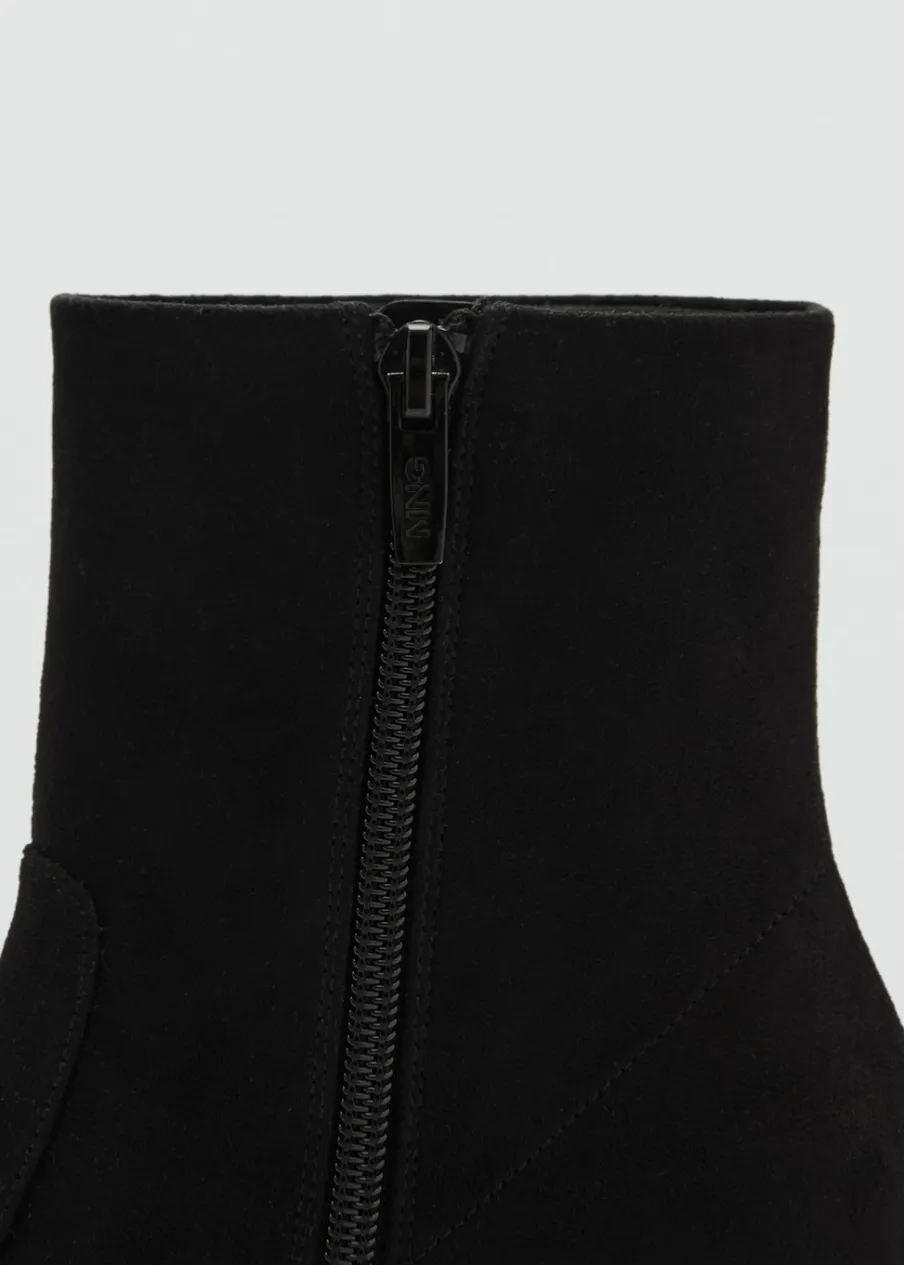 Spiczaste zakończenie. Efekt skóry. Obcas mierzy 8,5 cm. Zapięcie na zamek z boku. Wewnętrzna podszewka.