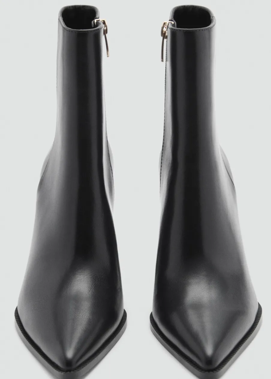 OpisEfekt skóry. Spiczaste zakończenie. Obcas klockowy. Obcas mierzy 8 cm. Boczne zapięcie na suwak.