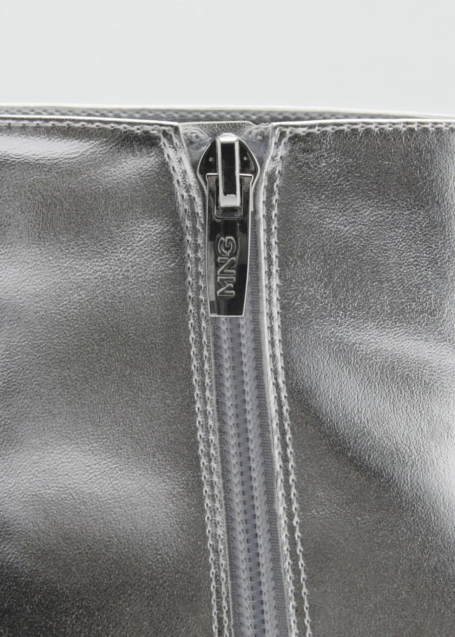 OpisMetaliczny efekt. Spiczaste zakończenie. Obcas typu kitten. Zapięcie na zamek z boku. Wewnętrzna podszewka. Obcas…