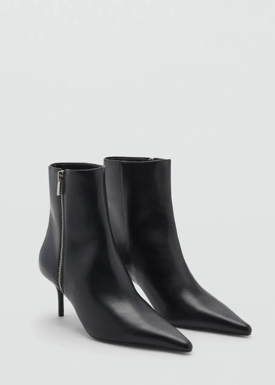 OpisEfekt skóry. Spiczaste zakończenie. Obcas szpilka. Obcas mierzy 6,5 cm. Zapięcie na zamek z boku. Wewnętrzna pod…