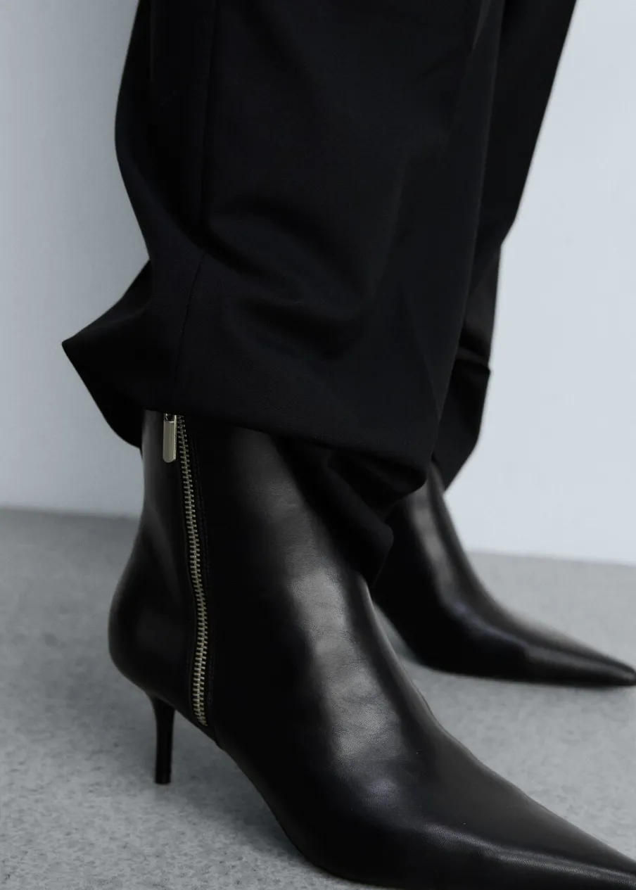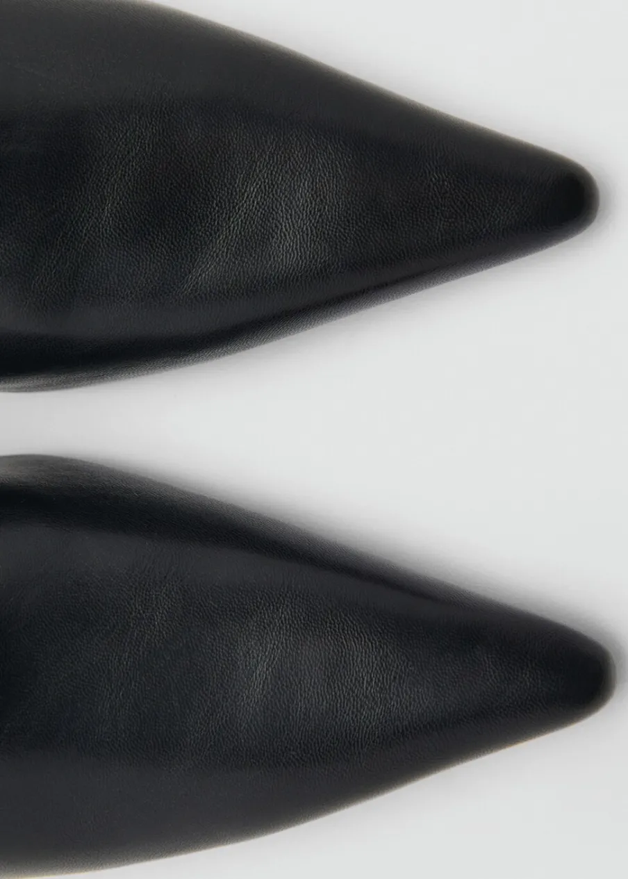 Efekt skóry. Spiczaste zakończenie. Obcas szpilka. Obcas mierzy 6,5 cm. Zapięcie na zamek z boku. Wewnętrzna podszewka.
