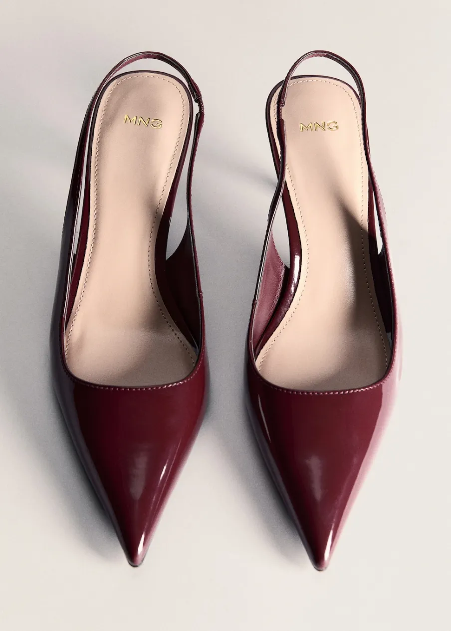 Imitacja lakierowanej skóry. Obcas typu kitten. Obcas szpilka. Spiczaste zakończenie. Bez zapięcia. Obcas mierzy 7,5 cm.