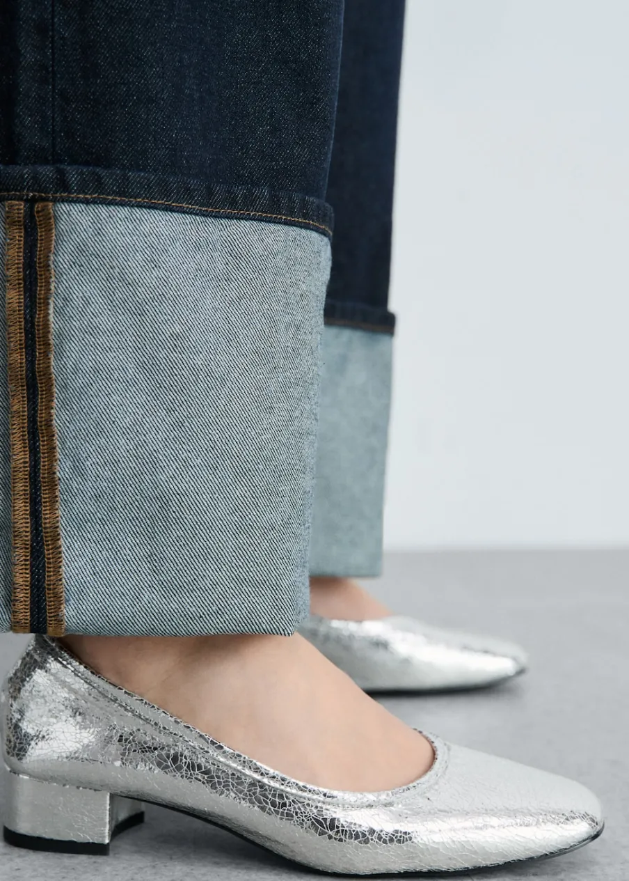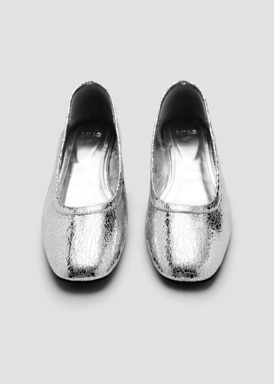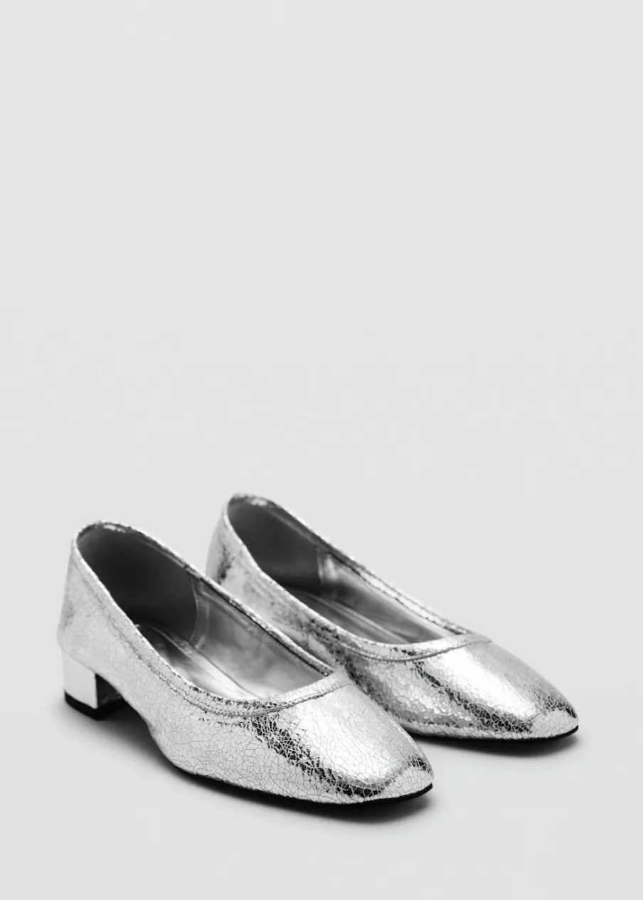 Efekt spękań. Metaliczny efekt. Okrągły nosek. Obcas klockowy. Bez zapięcia. Wewnętrzna podszewka. Wysokość obcasa 3 cm.